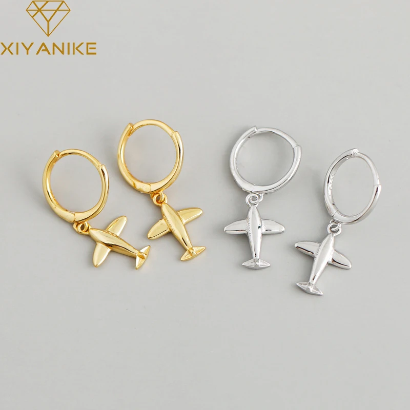 Серьги-кольца XIYANIKE серебристого цвета в форме самолета для женщин, блестящие Креативные украшения для вечеринок, оптовая продажа