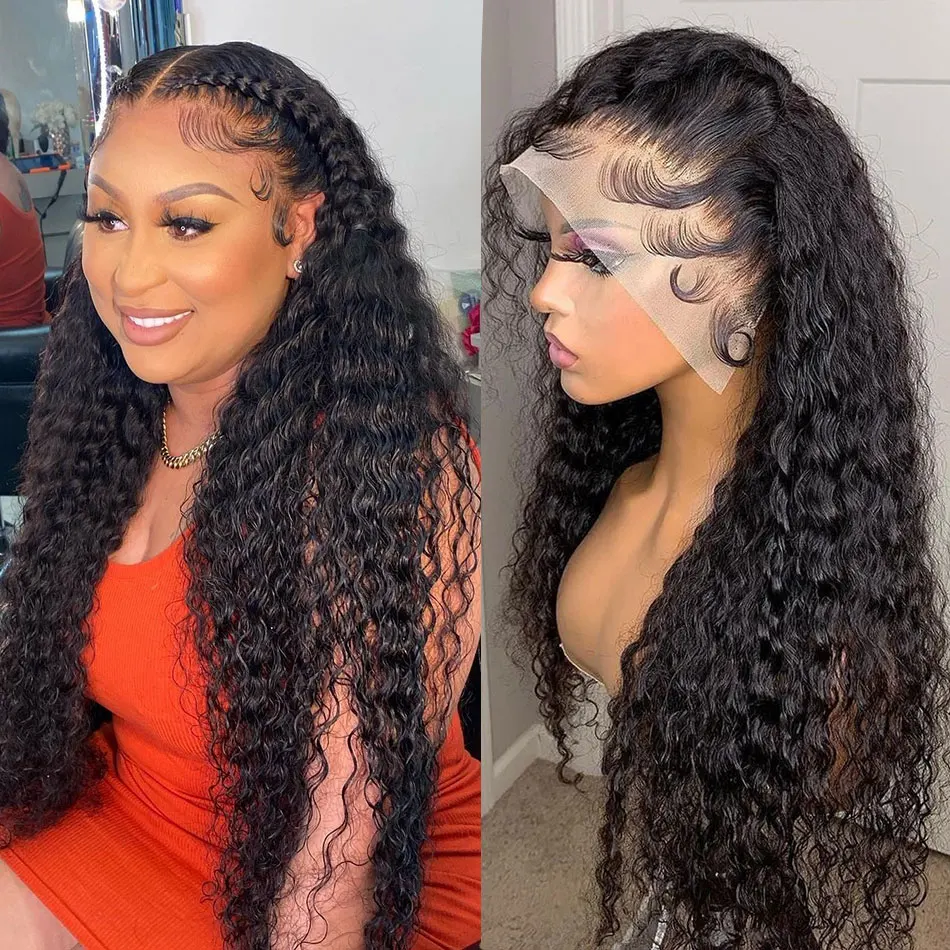 Парики из 100% человеческих волос Remy с глубоким волнистым кружевом, парики из бразильских волос 10-30 дюймов, длинные вьющиеся волнистые волосы, парики с водными волнистыми кружевами