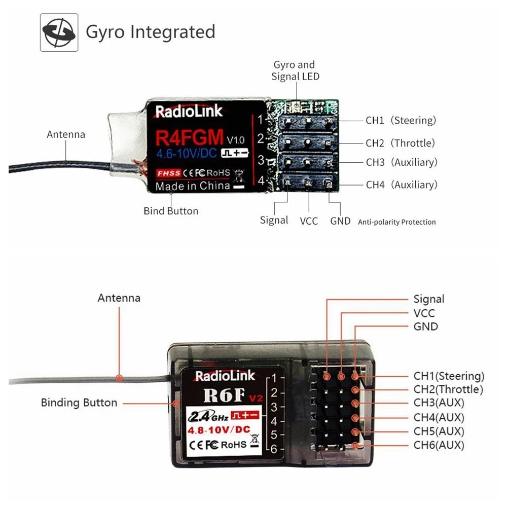 Радиоуправляемый приемник-гироскоп Radiolink 2,4 ГГц R4FGM R6FG R6F R7FG внутри для радиоуправляемых автомобилей лодок работает с передатчиком RC4GS V2 RC6GS V2 T8FB T8S