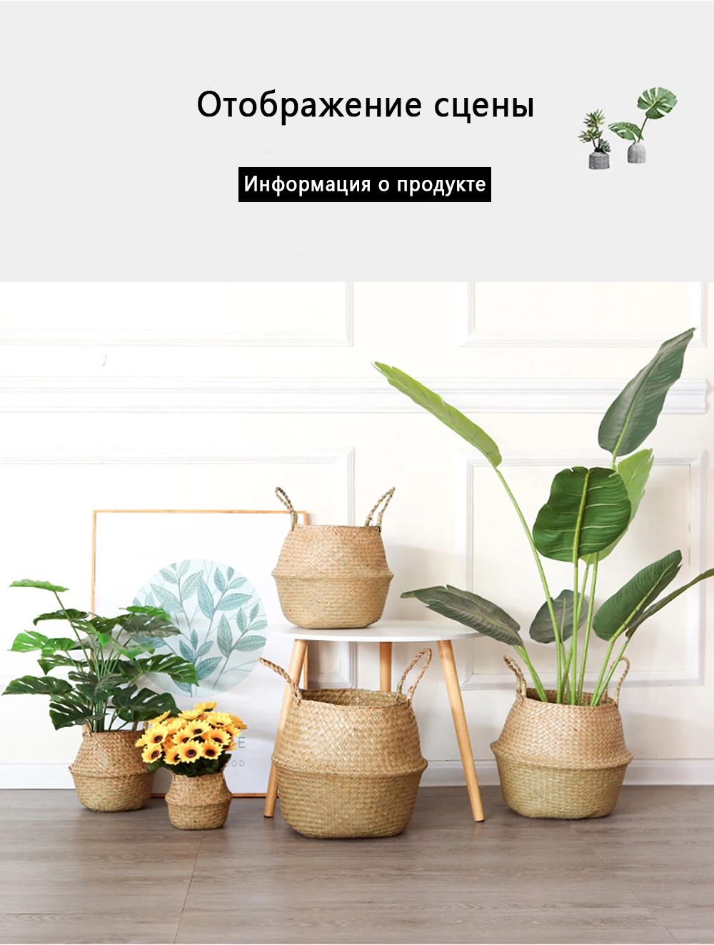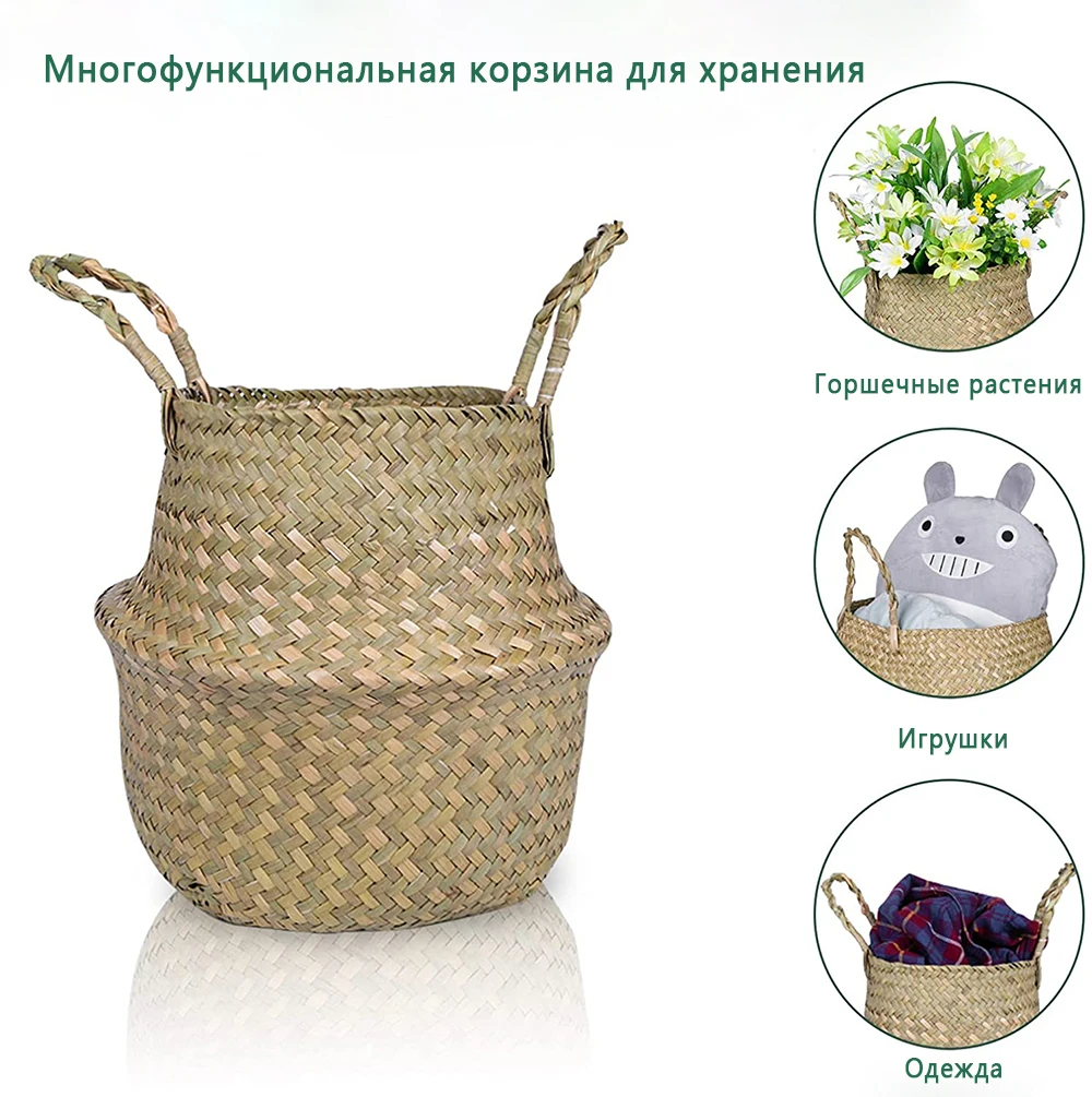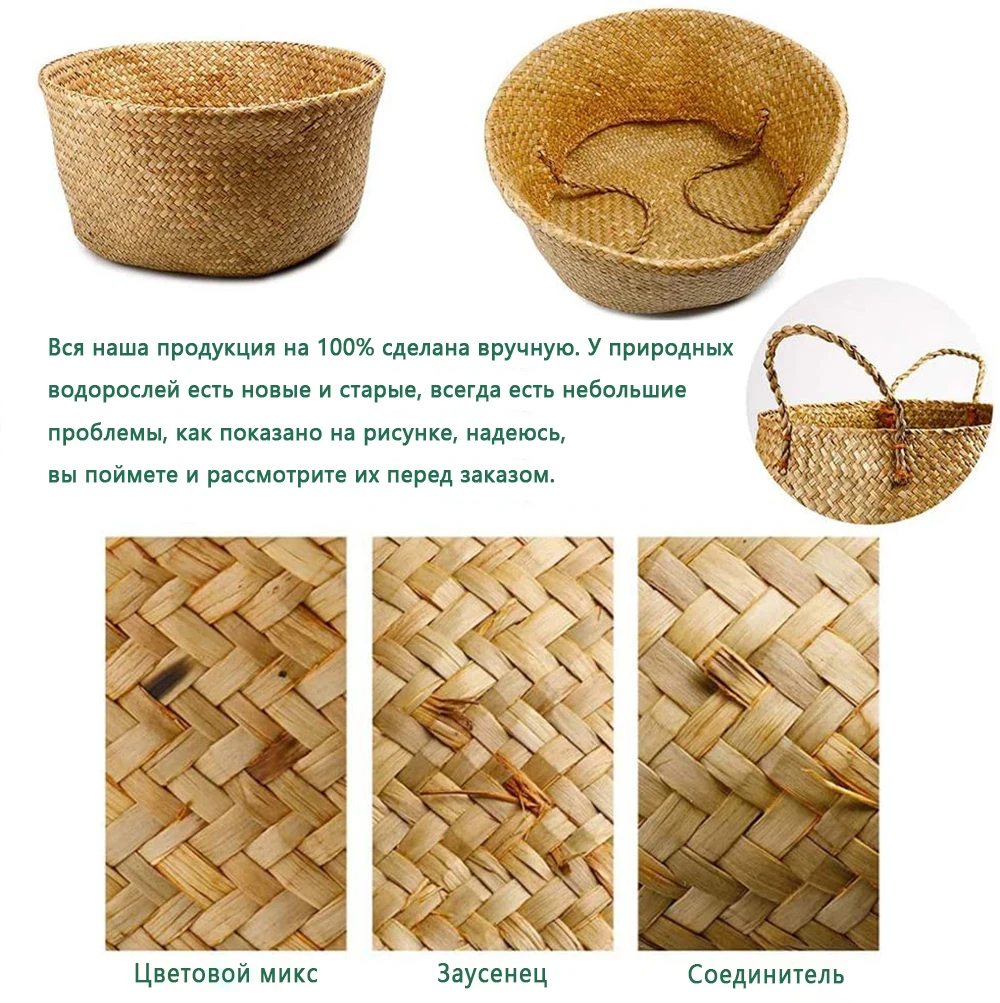 Houlife Кашпо плетёное водорослей Корзина плетеная Корзина для хранения Корзина для игрушек