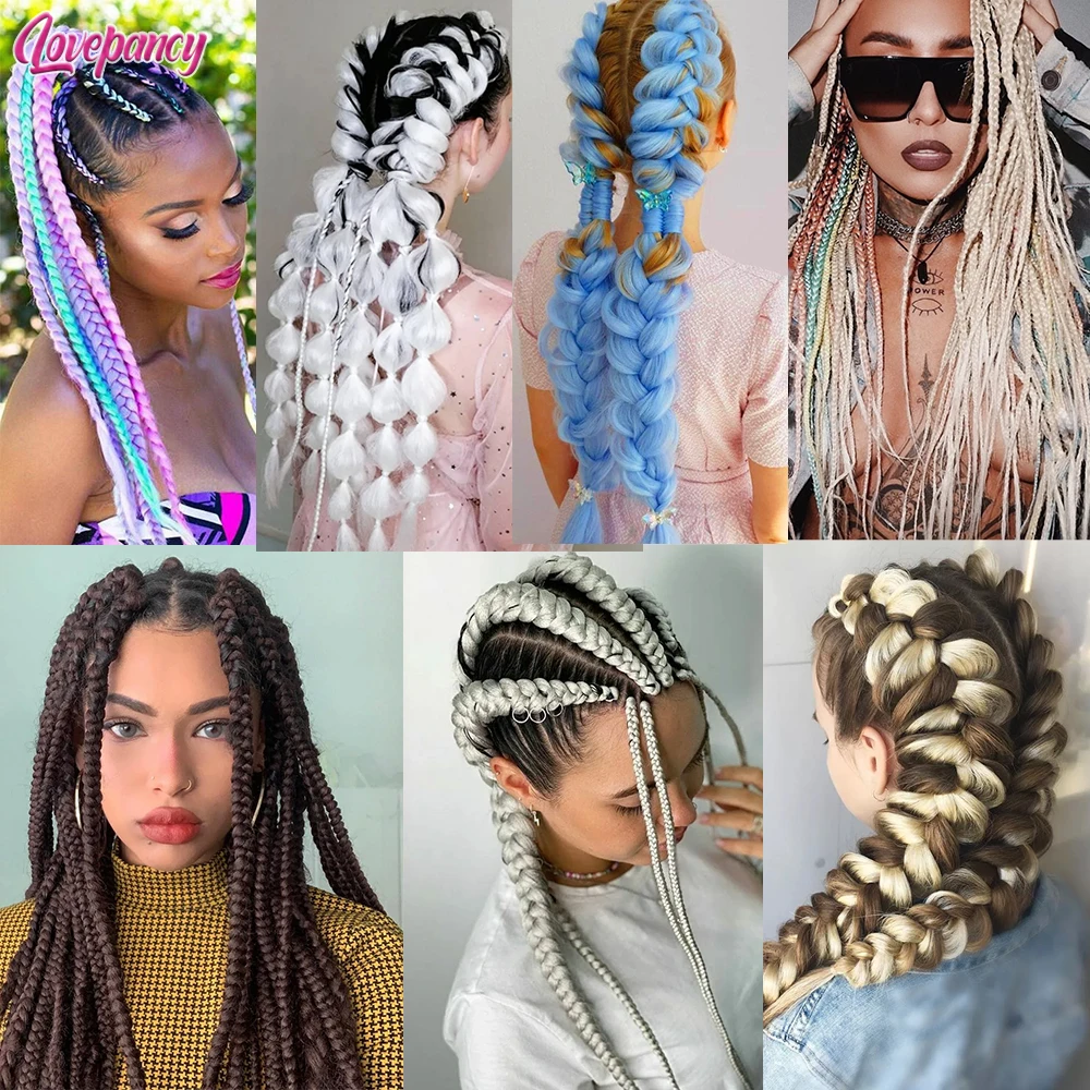 Косы для наращивания волос lovestre, синтетические косы для наращивания волос, предварительно растягивающиеся яки Kanekkalon, Джамбо косы, кроше, розовый, серый, синий, 613, Омбре