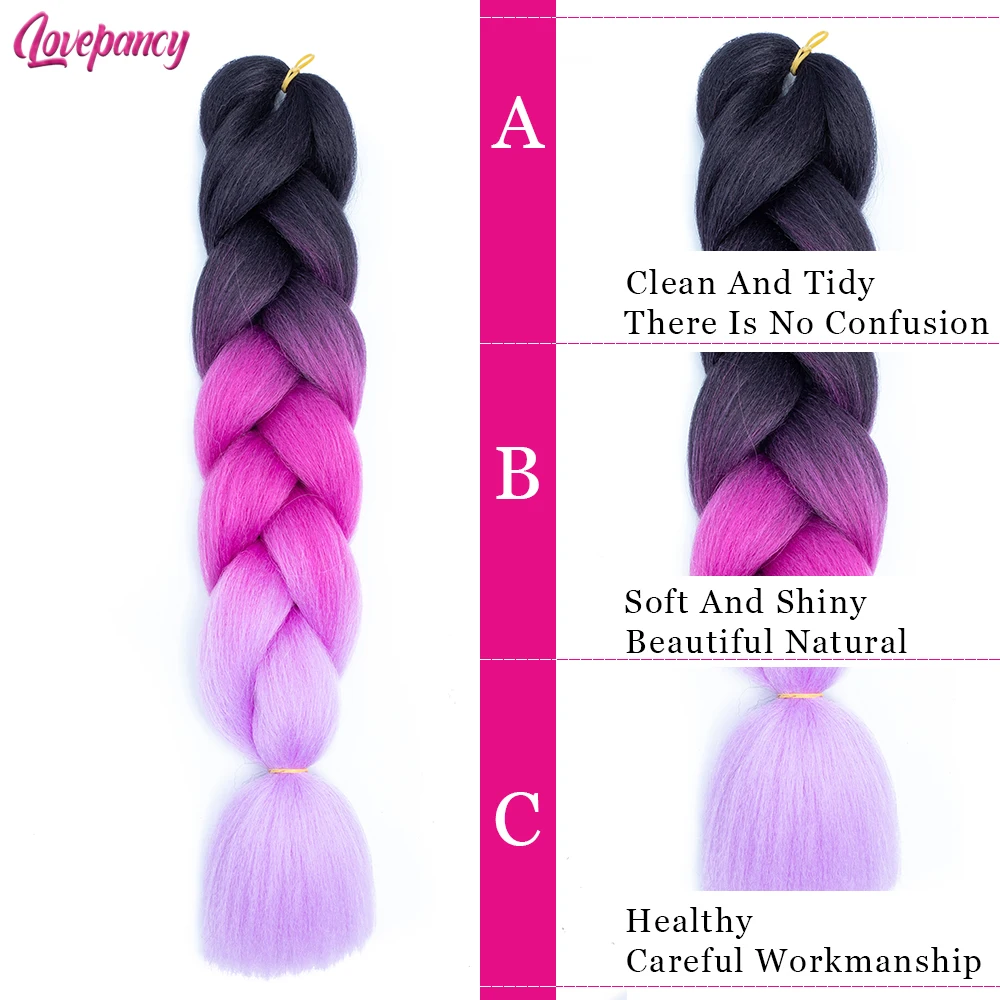 Lovecre Ombre джамбо коса вязанные волосы синтетическая коробка косички наращивание волос Предварительно растянутые Yaki Kanekkalon розовый серый синий 613