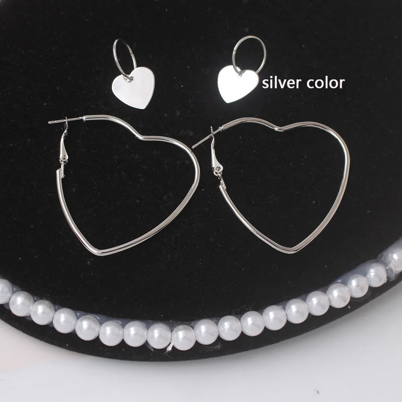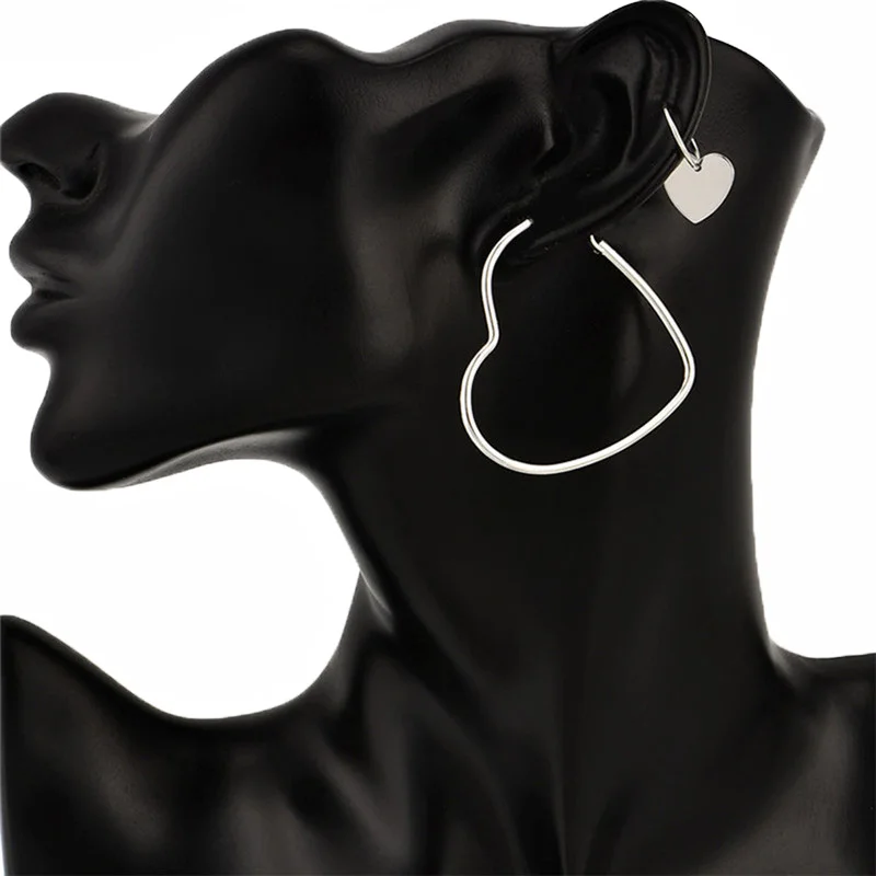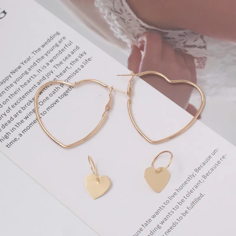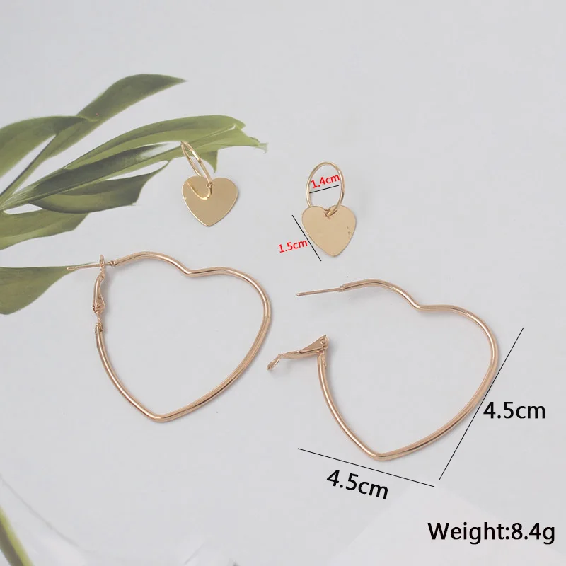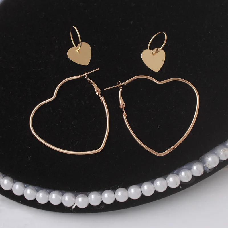 Серьги-кольца для женщин 2 парыкомпл., серьги-подвески в форме сердца с пряжкой для ушей, Необычные модные серьги, набор серег