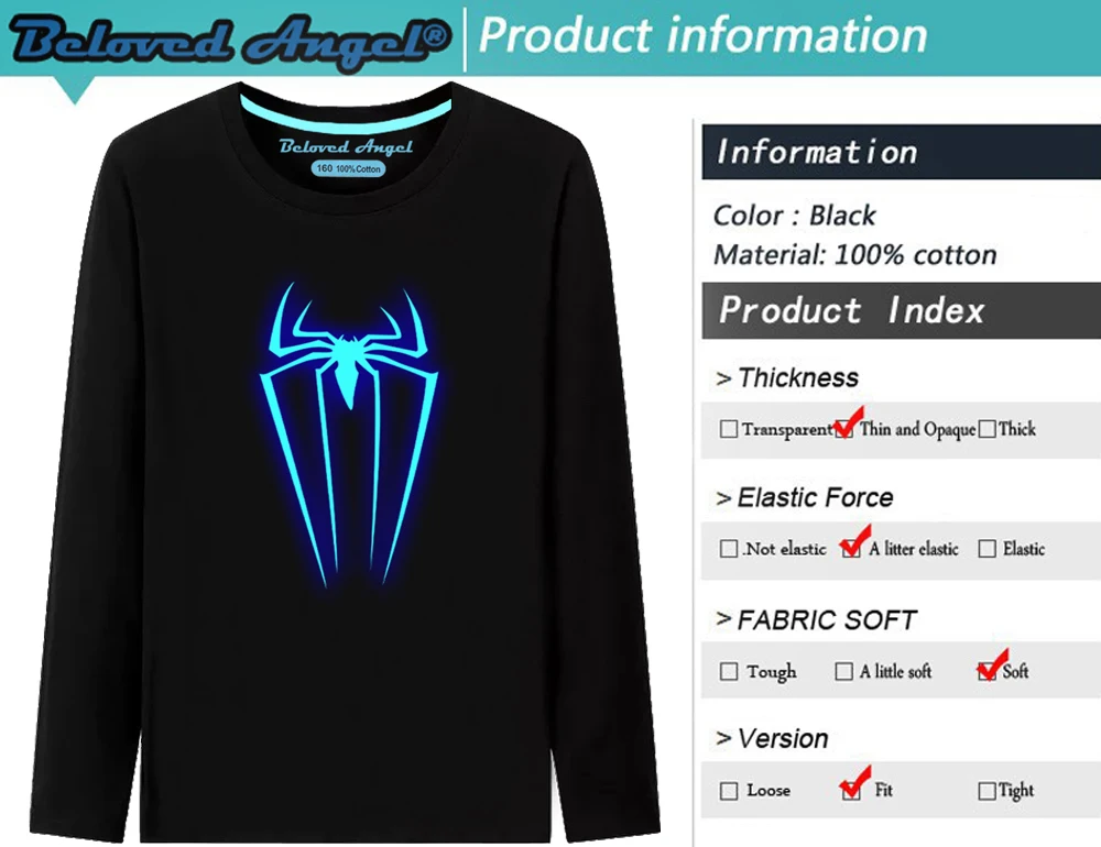 От 3 до 15 лет светящиеся футболки для малышей Детские топы с длинными рукавами для мальчиков и девочек хлопковые футболки для подростков