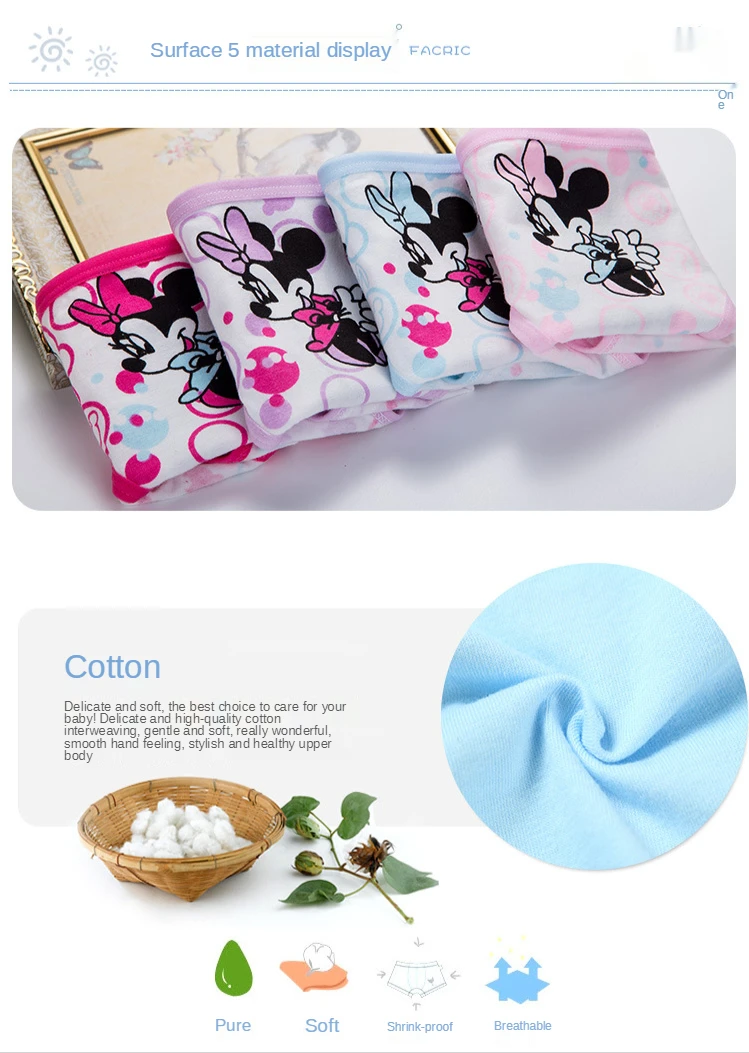 4 шт.компл., Детские хлопковые трусы-боксеры с принтом Минни Маус
