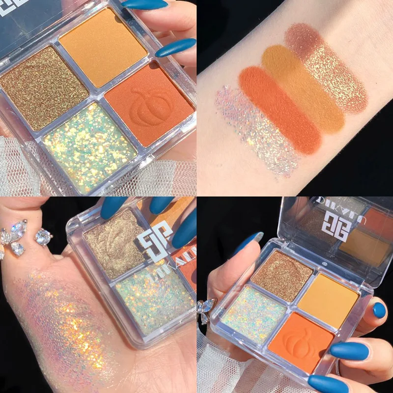 Палитра теней для век, 4 цвета, цветные тени, блестящий хайлайтер, мерцающий пигмент для макияжа, матовые тени для век