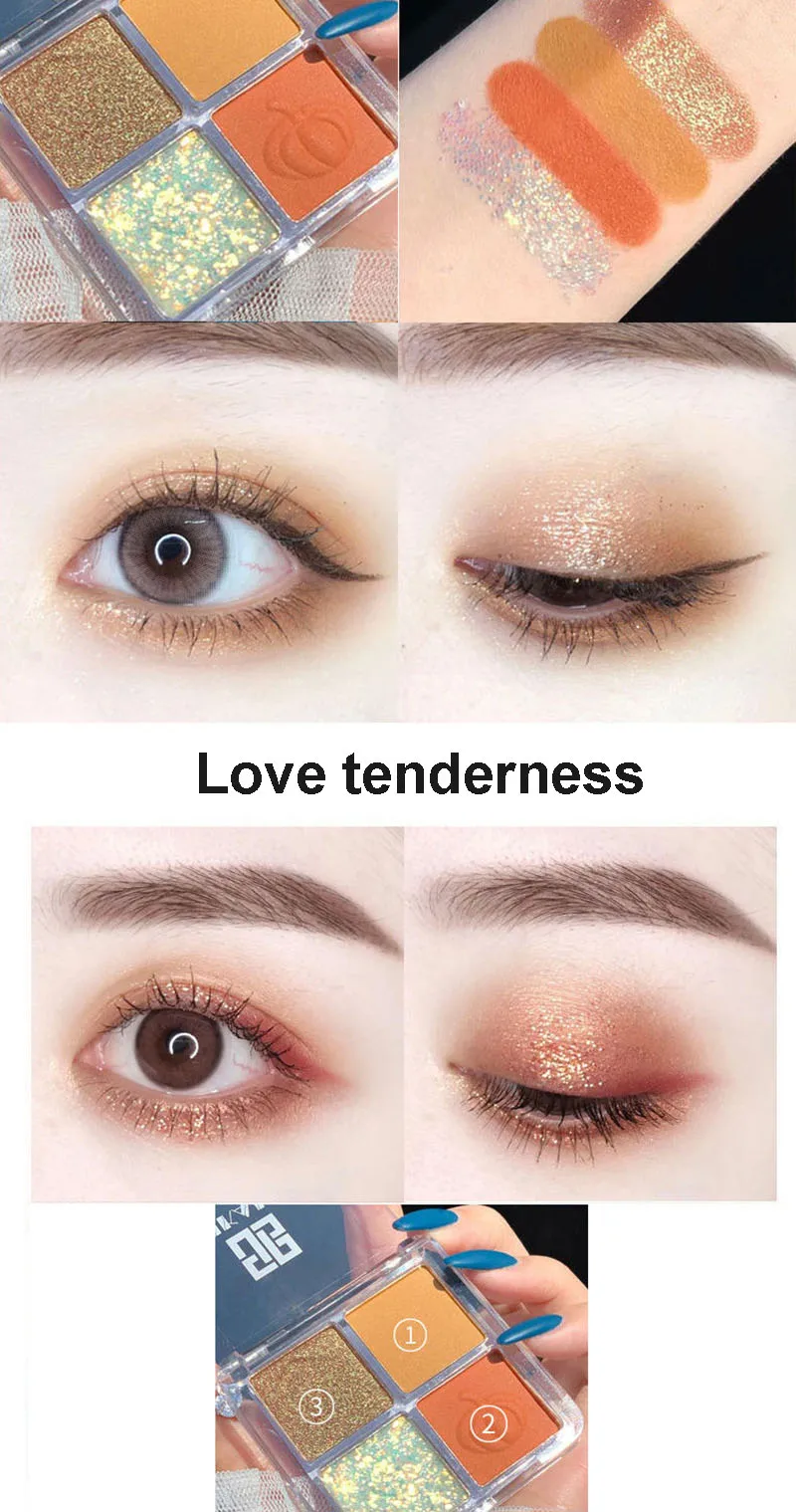4 цвета, тени для век, матовая блестящая палитра, блестящие тени дл...