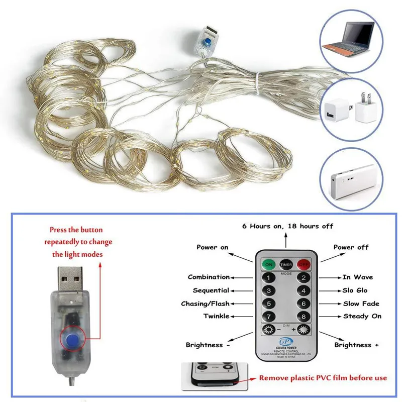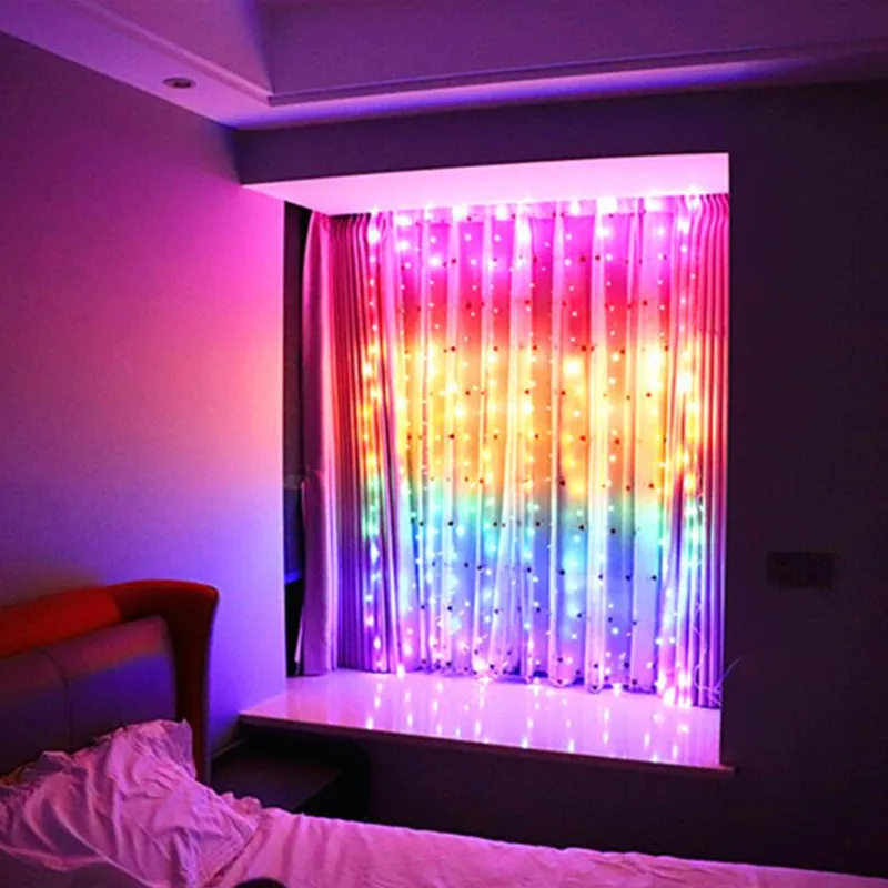 Светодиодный светильник с радужной медной проволокой, занавеска с дистанционным управлением через USB, фоновое украшение для стены, Рождественская атмосфера, декоративное освещение