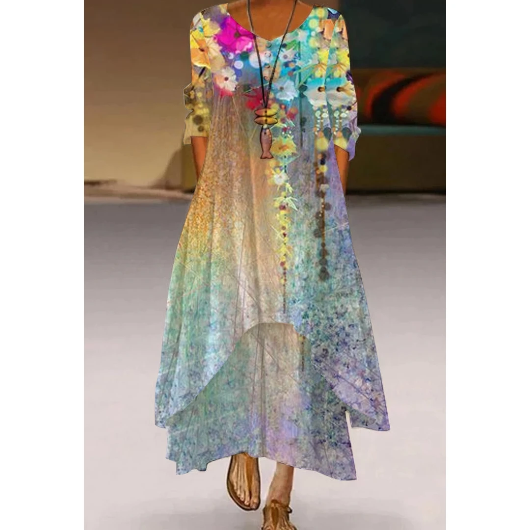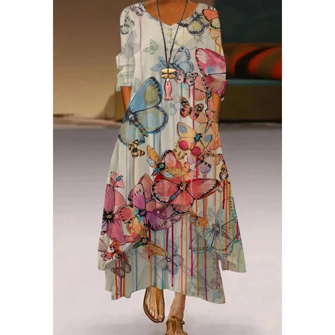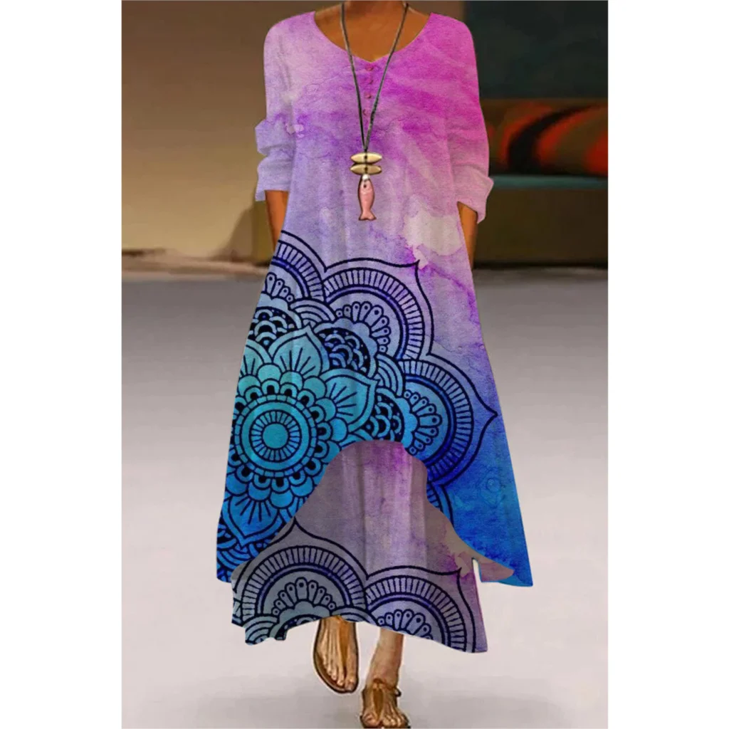 Женское свободное платье с длинным рукавом, длинное пляжное платье ...