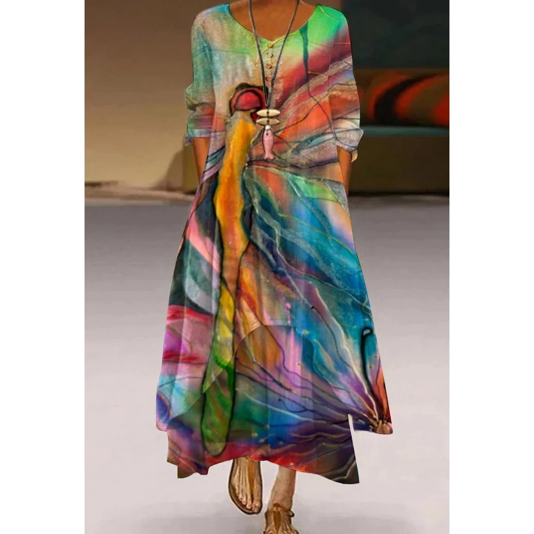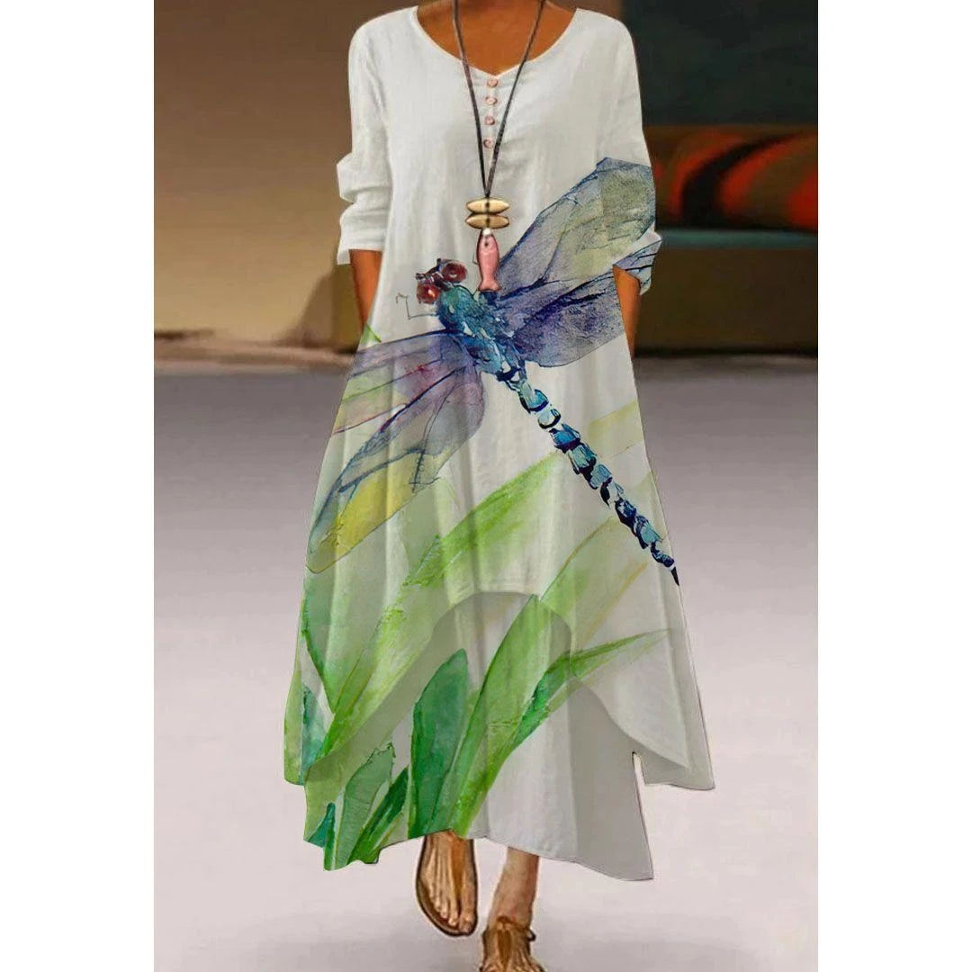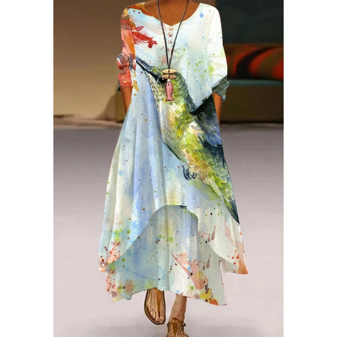 Длинное платье-макси в стиле Харадзюку с принтом природных птиц, женские повседневные Сексуальные вечерние платья, женское элегантное винтажное платье
