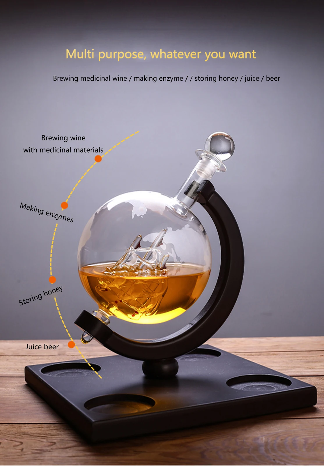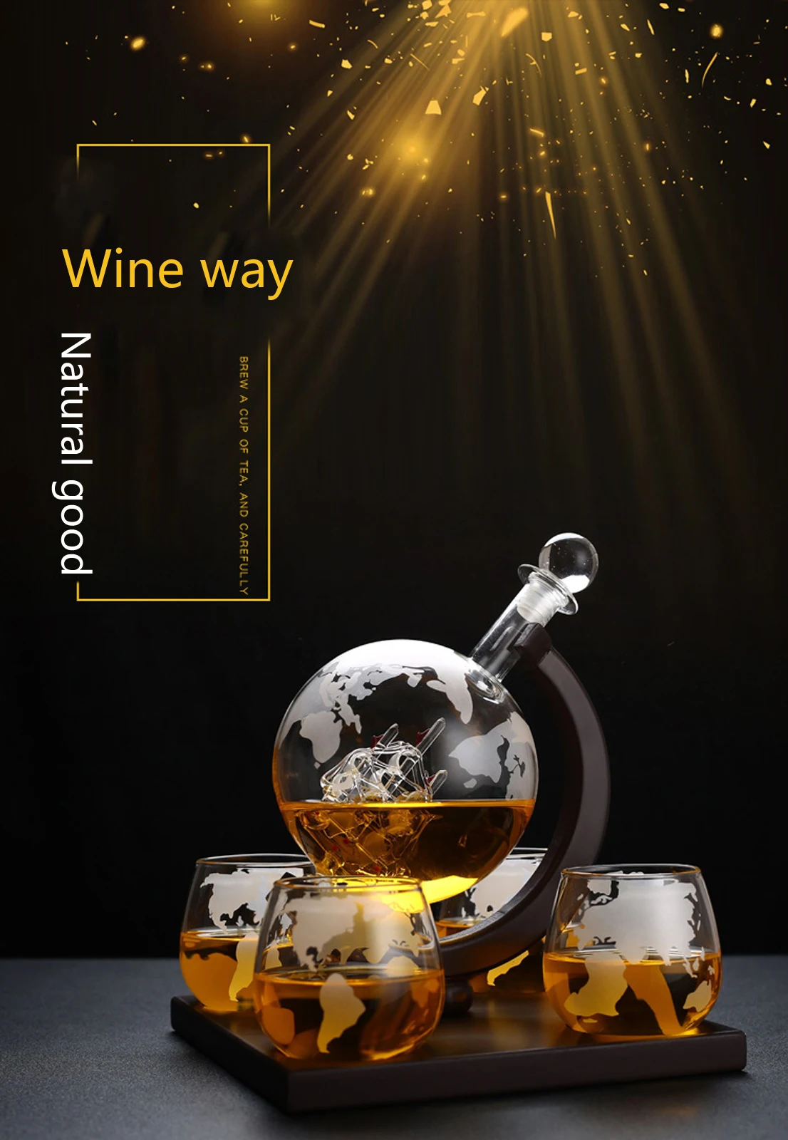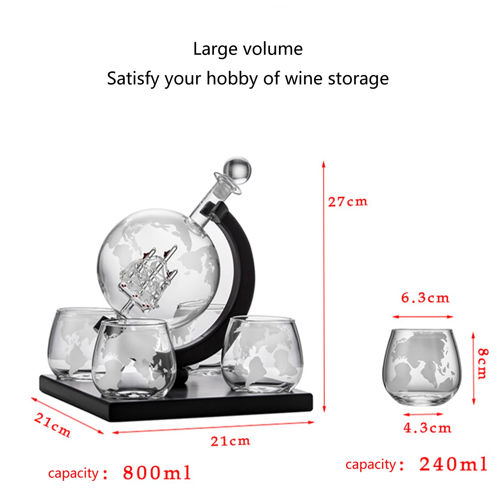 6 в 1 комплект: наш земной шар виски графин поставляется со старинным корабль графин, 4 карта мира травления стекла и 1 деревянная подставка.