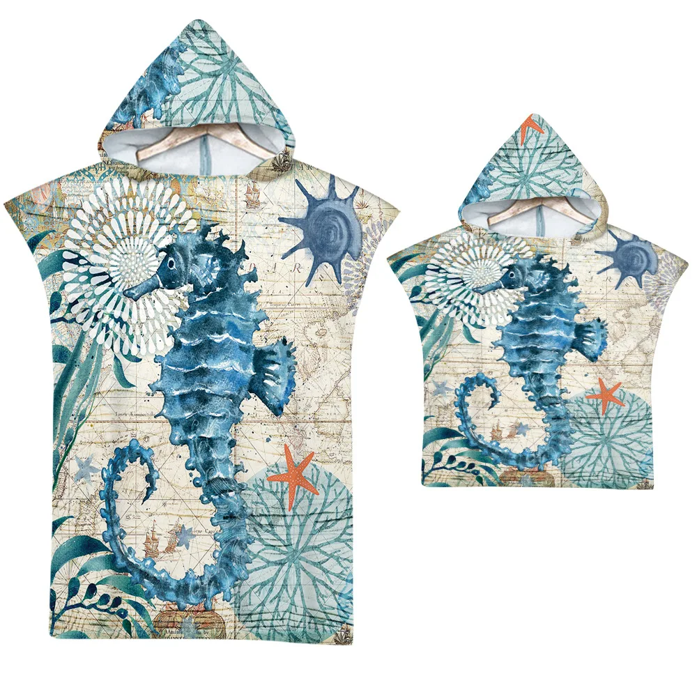 Пляжное полотенце из микрофибры с капюшоном для детей и взрослых