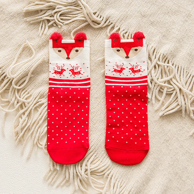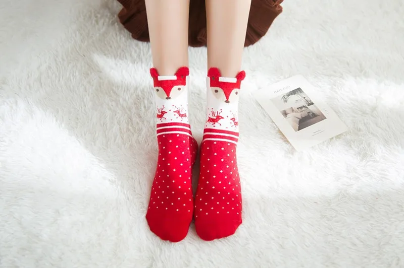 Женские рождественские носки, осенне-зимние красные рождественские носки с 3D рисунком из мультфильма, Милые Японские Женские носки-носки с оленем, модель WZ006