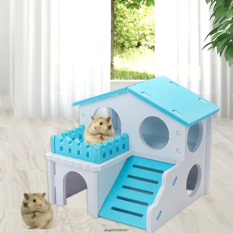 Деревянный домик для хомяка, 2-этажная вилла, маленькие питомцы, иг...