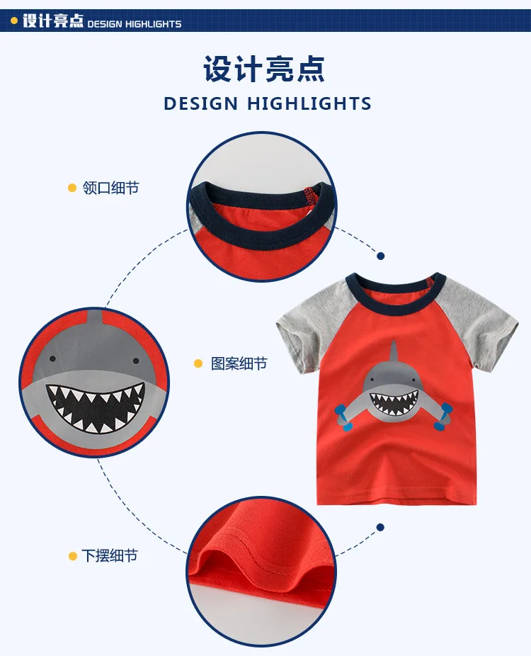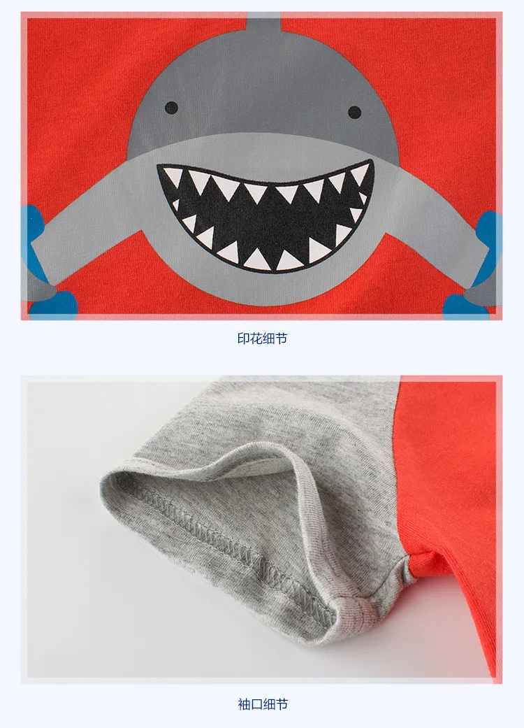 27kids Shark Print Boys Футболки для детской одежды Детские футболк...