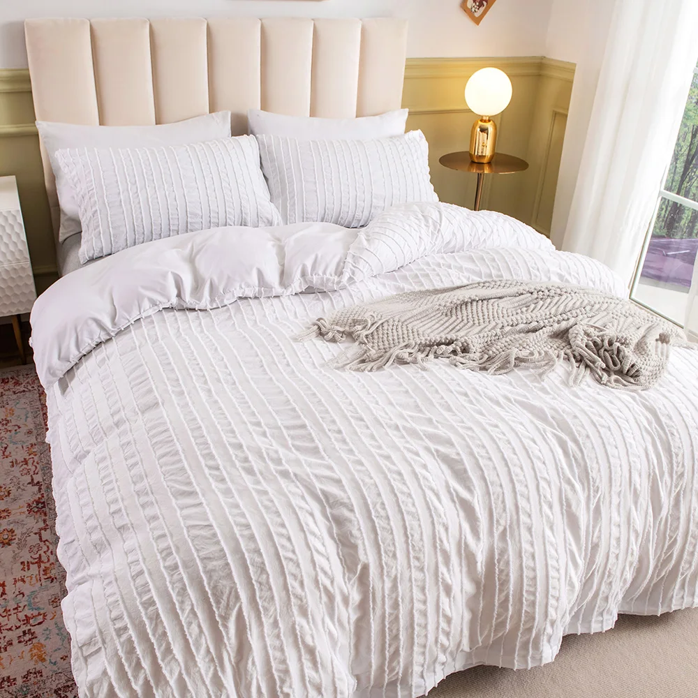 Роскошный белый комплект постельного белья в полоску с застежкой, пододеяльник, одеяло из полиэстера, Комплект постельного белья без простыни, двуспальный, двуспальный, размер King