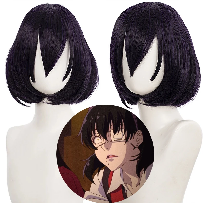 Парик Kakegurui Midari Ikishima для косплея, короткий, черный, фиол...