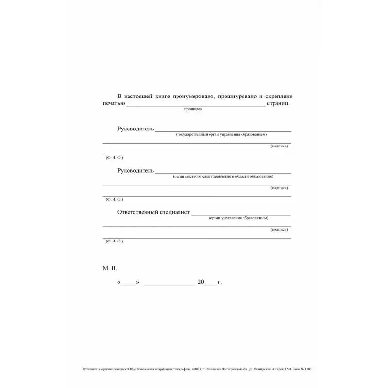 Книга учета бланков аттестатов о среднем (полном) общем образовании - документ, предназначенный для ведения учета выдачи бланков аттестатов, а также приложений к ним, выданных для всех общеобразовательных учреждений. Первая часть документа содержит информацию об общем количестве полученных, а также выданных бланков аттестатов о среднем образовании учащихся обычного образца, а также аттестатов о среднем образовании особого образца, предназначенных для лиц, закончивших школу с золотой медалью. Во второй части книги фиксируется информация об учениках закончивших среднюю школу, а именно: год их выпуска, оценки по предметам, перечисленным в соответствующем аттестате, делаются отметки об учениках получивших золотые медали или похвальные грамоты. В случае, если ученикам были выданы дубликаты аттестатов, запись об их выдаче так же необходимо зафиксировать в данной книге в соответствующих графах документа, предназначенных для отображения номеров аттестатов на которые были выданы дубликаты. В случае, если тем или иным учеником среднее образование было получено экстерном, необходимо в предназначенной для такой записи графе сделать соответствующую пометку, указав при этом год поступления на обучения ученика. Все записи, отображенные в книге учета бланков и выдачи аттестатов о среднем образовании, должны быть подтверждены подписями лиц, которыми были выданы аттестаты, а также содержать образец оттиска печати школы. Книга учета бланков аттестатов о среднем (полном) общем образовании формата А4 (197x285 мм). Обложка розового цвета из мелованного картона, 200 г/кв. м покрыта офсетным лаком. Внутренний блок - газетная бумага, 45 г/кв. м, 88 страниц. Переплет мягкий, на скрепке.