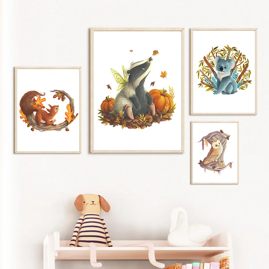 Лиса кролик белка мышь коала натуральное животное настенная Картина на холсте скандинавские постеры и принты декоративные картины для гостиной