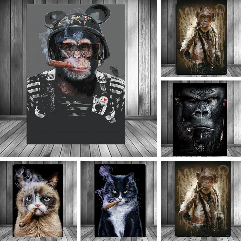 Панк-орангутан обезьяна чимп Художественная Картина на холсте животные Современная Стена кошка курить картины Декор для дома плакат без рамки