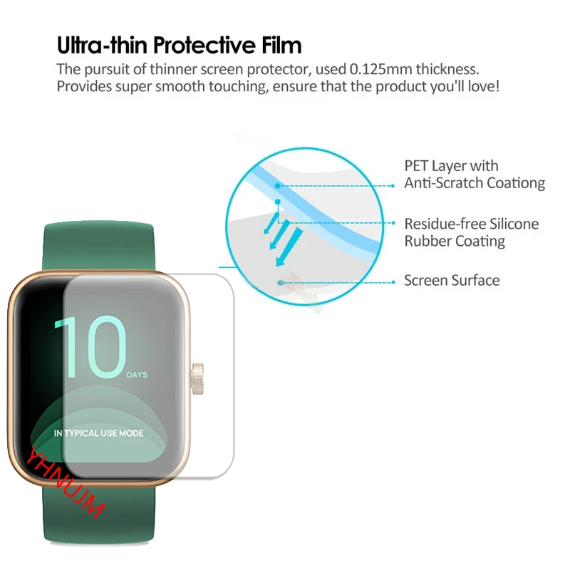 Защита экрана придает смарт-часам новый вид и ценность. Пленка обладает высокой чувствительностью к отклику и не желтеет, принимает оптическую прозрачность в один слой, делает ее гибкой и жесткой. Ваше одностороннее решение для защиты вашего драгоценного экрана от нежелательных и случайных царапин или повреждений