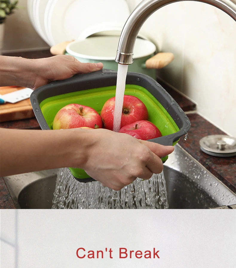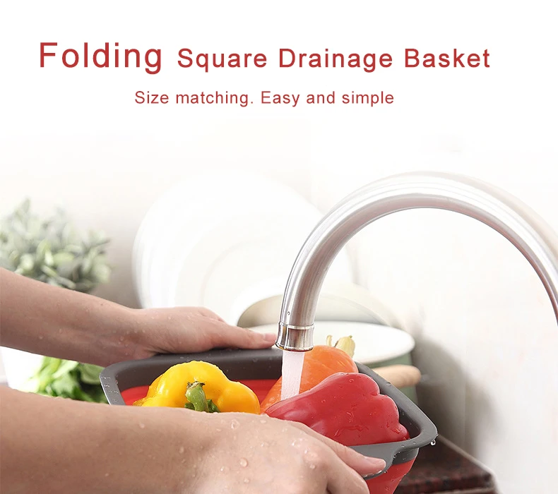 Квадратная дренажная корзина, складной дренажный дуршлаг, гибкий складной Кухонный Контейнер для хранения, кухонные приспособления