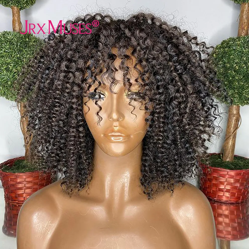 Афро кудрявые вьющиеся человеческие волосы парики с челкой без клея предварительно выщипанные бразильские кудрявые волосы Remy полностью машинное изготовление для женщин
