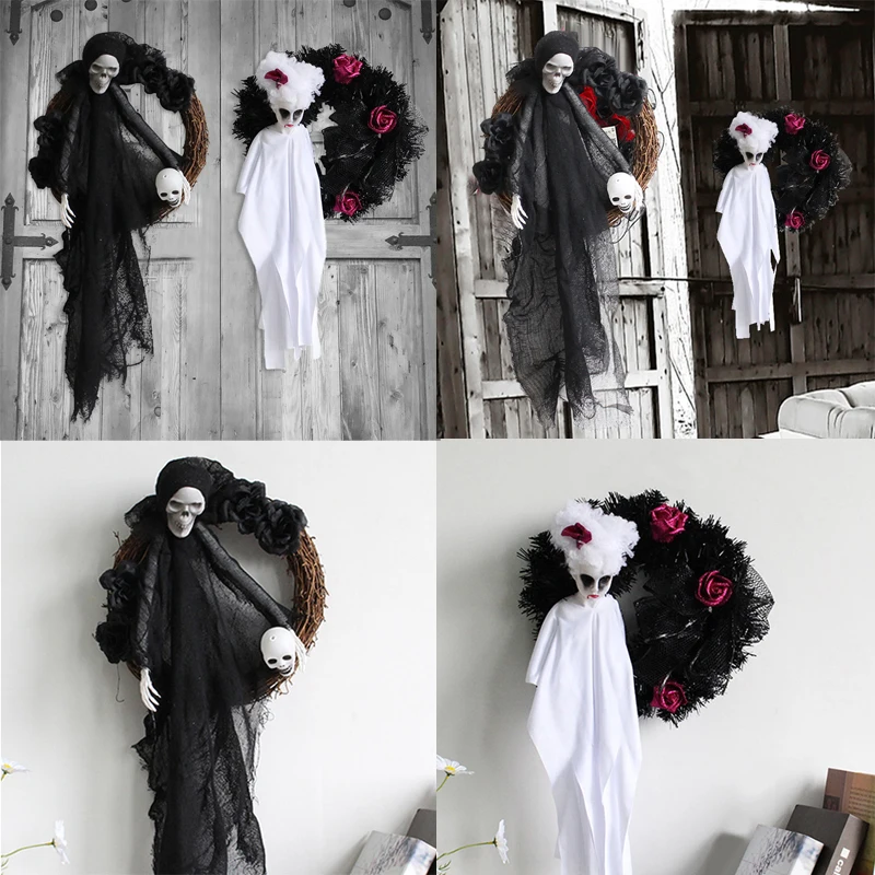 Уникальное украшениеКрасивый венок сочетает в себе элементы Хэллоуина, идеальное сочетание странного и шикарного. Их можно повесить на гирлянды, двери, окна, стены или где угодно, очень удобно.