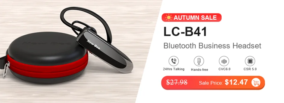 В чем разница между NB-B41-S и NB-41? Наушники одинаковые, единственные две отличия в посылка, что в упаковке NB-B41 S нет сумки, а NB-B41-S дешевле. Почему я должен выбрать наушники NB-B41-S? 1. Лучшее качество односторонних наушников на aliexpress, подтвержденное продавцом. Самый большой номер заказа, лучший Звездный рейтинг.(https://es.aliexpress.com/store/product/New-Bee-Hands-free-Wireless-Bluetooth-Earphone-Bluetooth-Headset-Headphone-Earbud-with-Mic-Super-Capacity-Battery/2665009_32740620085.html?spm=2114.12010608.0.0.7d81210fx7a8fE) 2. Изящный звук, четкий разговор, долгое время воспроизведения музыки, модный внешний вид. 3. Лучшее обслуживание: Если у товара есть какие-либо проблемы с качеством, сообщите нам, мы вернем вам деньги или отправим вам новый наушник.