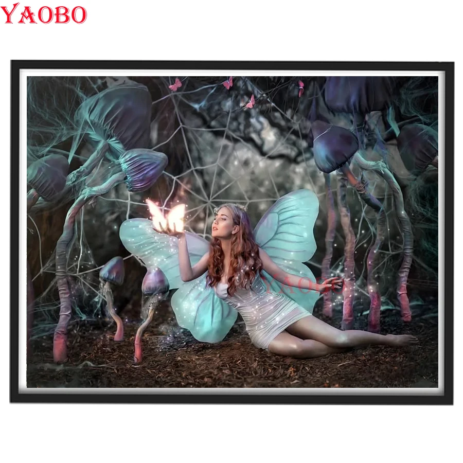 5D DIY Алмазная картина фантазия гриб бабочка сказочные, крест-накрест стежка полная дрель вышивка Алмазная мозаика картина домашний декор