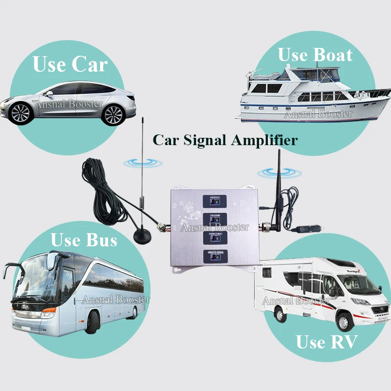 Автомобильный Применение сотовой связи усилитель 900/1800/2100/2600 МГц с четырьмя двух Диапазонный усилитель сигнала 2G 3G 4G GSM 900/WCDMA 2100/DCS 1800/LTE2600 МГц Мобильный телефон Репитер сигнала мобильного телефона в автомобиле