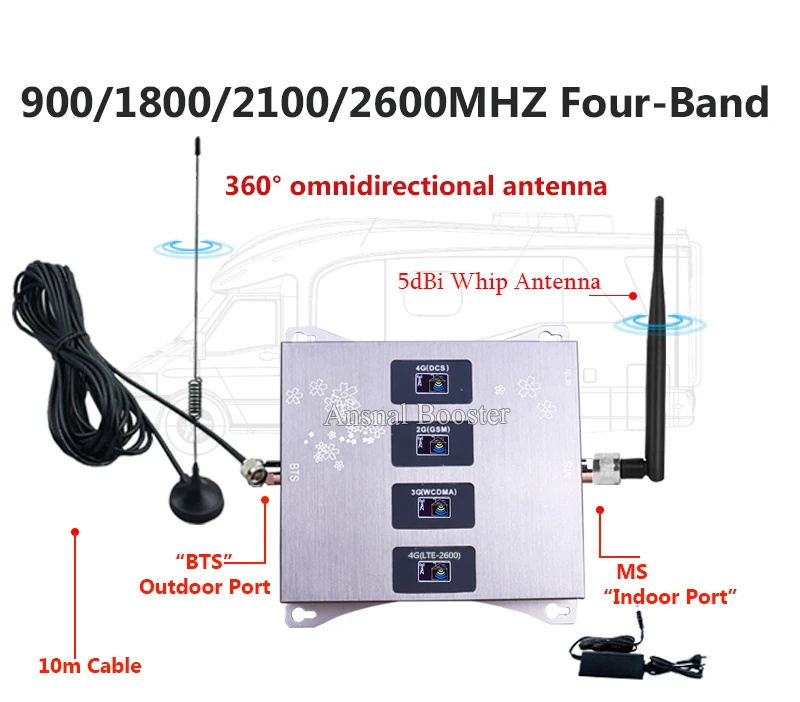 Усилитель сигнала для автомобиля четырехдиапазонный 900/1800/2100/2600 МГц усилитель мобильного сигнала