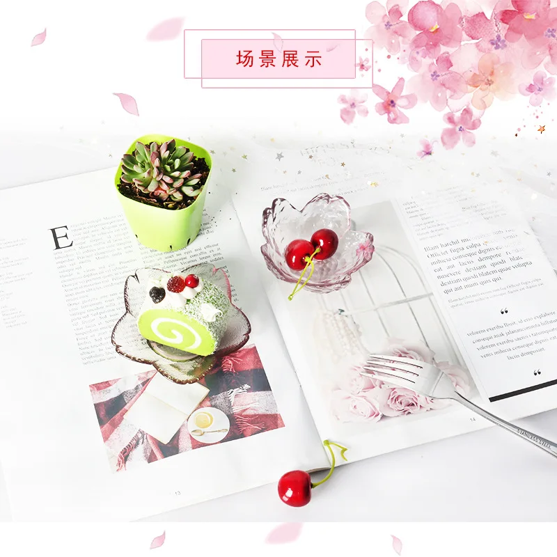 Маленькая стеклянная тарелка в скандинавском стиле, стеклянная миска для соуса, мини-японские цветки вишни, лампа для мороженого, фруктов