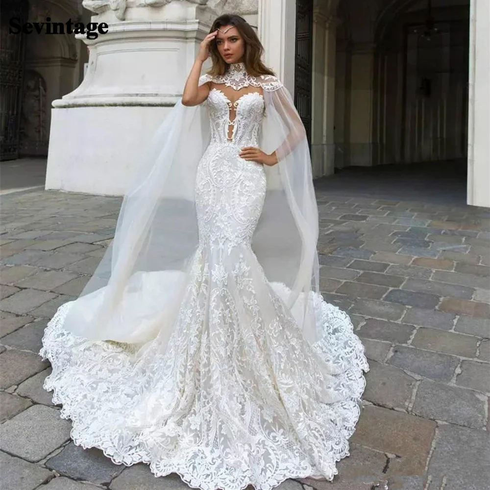 Женское свадебное платье-Русалка Sevintage, кружевное платье без рукавов, с открытой спиной и V-образным вырезом, свадебное платье