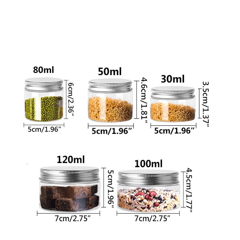 Описание товара100% новый и высокое качествоПрозрачный круглый ПЭТ широкие пластиковые баночки пустая косметическая коробка для макияжа контейнер для хранения еды банка бутылка для горшка.Качество еды и беспорядок. Наши банки для хранения изготовлены из пищевого материала. Прозрачный корпус изготовлен из ПЭТ-пластика, который безопасен и удобен в использовании в повседневной жизни. Крышки из алюминия. Светильник, но прочный.Герметичность и герметичность. Подкладка из пенопласта на верхней крышке создает герметичное уплотнение, когда вы накручиваете крышку. Не беспокойтесь, что ваши товары будут просочиваться или сыро.Прозрачный пластиковый корпус с широким ртом-это легкий доступ, который позволяет легко снимать или измерять предметы.В наличии много размеров. 30/50/80/100/120. Различные размеры, чтобы удовлетворить ваши различные запросы.Отлично подходит для кухни, кладовки или дома, чтобы хранить сухие продукты, кофейные зерна, кофейные порошки, соль, сахар, арахисовое масло, мед, джем, закуски, корм для собак, десерты, косметика, слизь, крем, ремесла и т. Д.Материал: пластиковый корпус и алюминиевая крышкаЦвет: прозрачныйЁмкость: 30 мл/1oz, 50 мл/1,7 oz, 80 мл/2,7 унций, 100 мл/3,4 унций, 120 мл/4oz,Размер (Д * В): прибл.30 мл 50x3 5 мм/1,97x1. 38''50 мл 50x4 5 мм/1.97x1.77''80 мл 50x6 2 мм/1.97x2.44''100 мл 70x4 2 мм/2.76x1.65''120 мл 70x5 0 мм/2.76x1.97''Посылка включает в себя: 10 пластиковых банокВниманиеВозможны небольшие отклонения в размере из-за измерения человеком.Из-за эффекта светильник и яркости монитора, его возможны незначительные отклонения s светильник различия между цветовых тонах между фотографией и самим товаром!Не используйте в микроволновой печи, и мы рекомендуем Ручная стирка этих пластиковых банок для хранения для лучшей долговечности.Не подходит для хранения горячей жидкости/продуктов питания и не подходит для посудомоечной машины.Примечание:1. Ввиду того, что Замеры производились вручную, замеры сделаны вручную, поэтому возможны, так как измерения выполнены вручную 0,1-0,3 мм.2. Поскольку разные компьютеры отображают разные цвета, спасибо за понимание, фактический цвет продукта может немного отличаться от изображения.Если у вас есть какие-либо вопросы по этому продукту, пожалуйста, свяжитесь с нами. Мы ответим вам как можно скорее.Большое спасибо за вашу поддержку. Счастливые покупки!