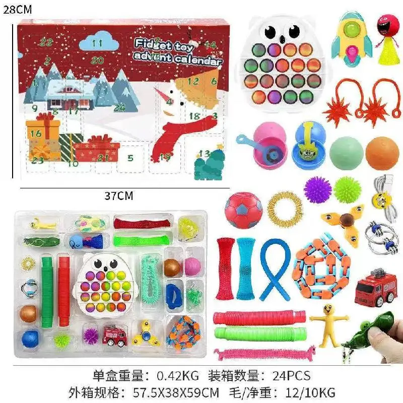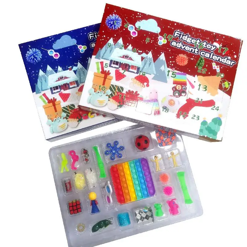 Игрушки-фиджеты с Адвент-календарем, набор игрушек антистресс на 24 дня, Рождественская упаковка, игрушки с простыми ямками, глухая коробка, Нажимаемые пузыри, рождественские подарки