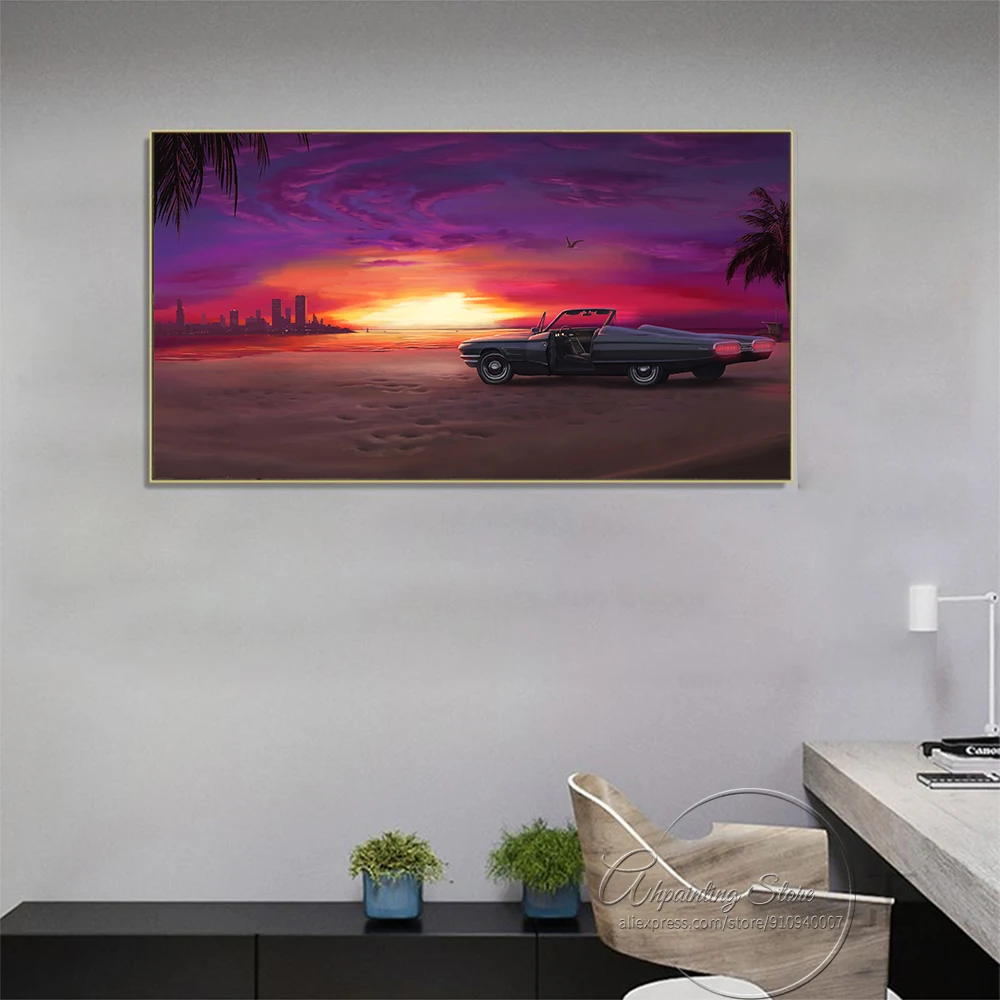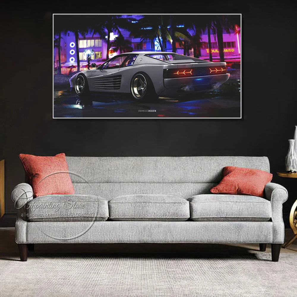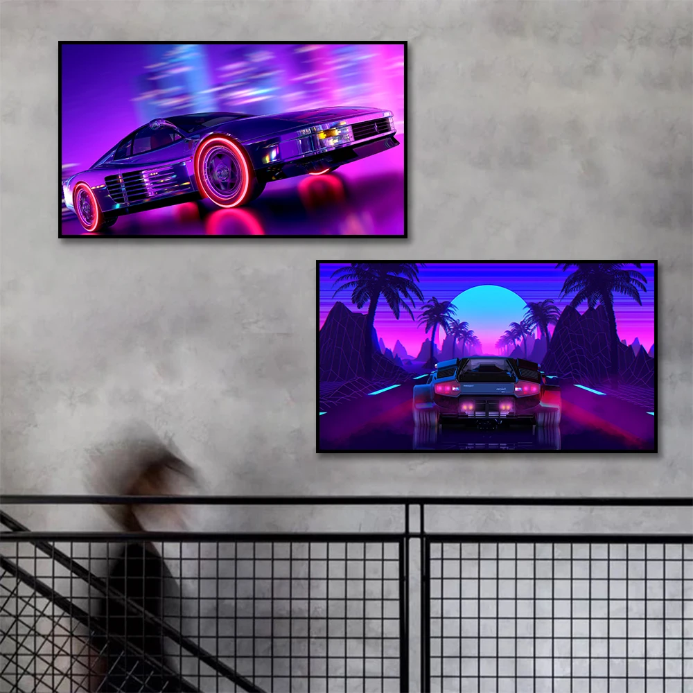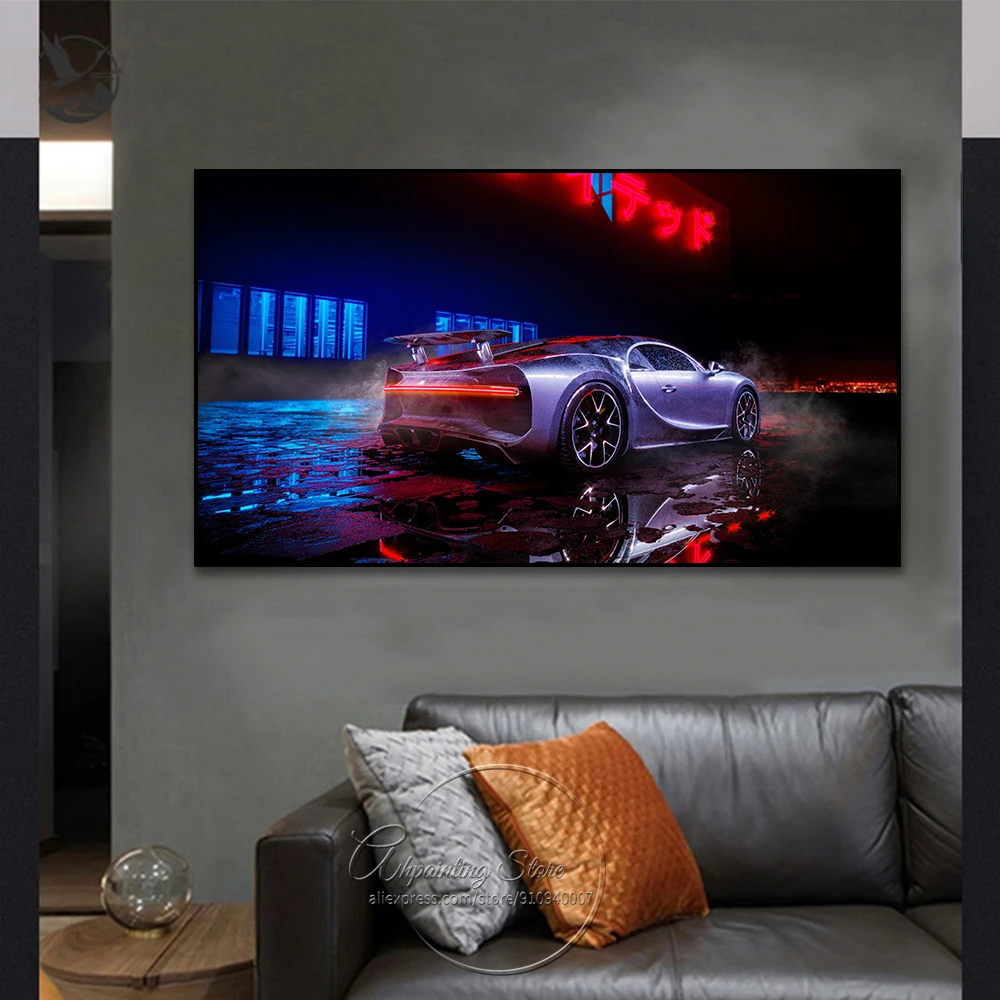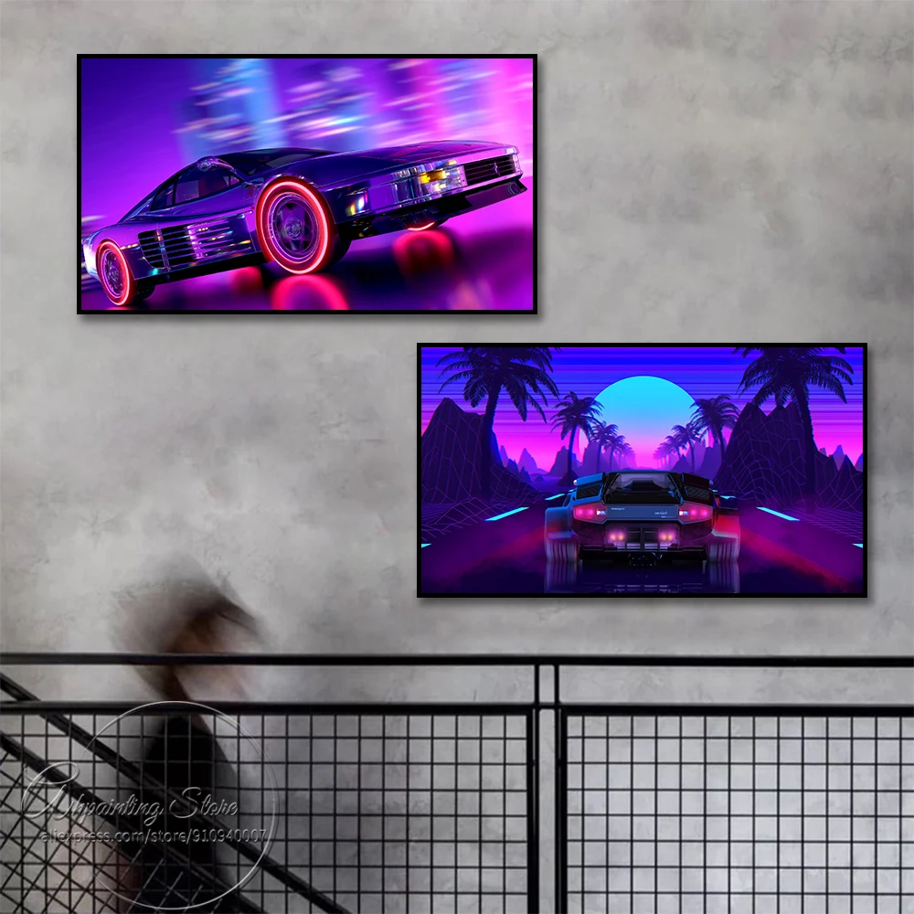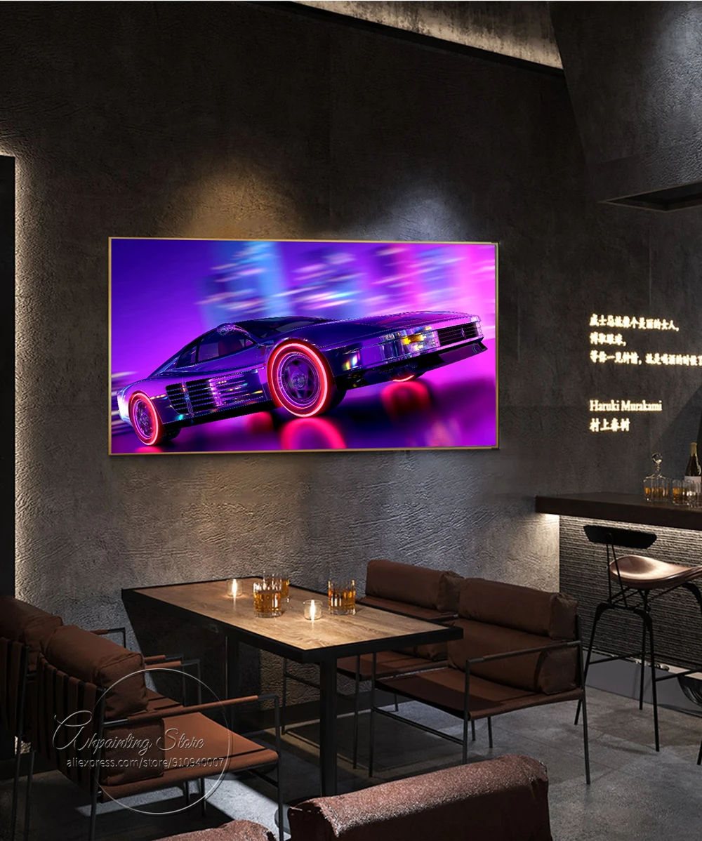 Постер в стиле киберпанк, с изображением спортивного автомобиля, улицы, настенные картины, игровая комната, домашний декор, сетка, декоративный Рисунок для бара