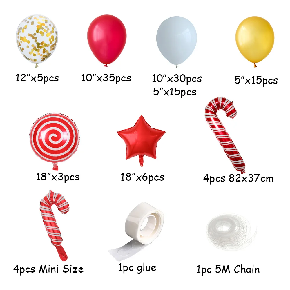 119 шт рождественские красные и белые воздушные шарики в виде леденцов комплект гирлянды цепи Рождественские шары украшения для дома гелиевые глобусы Navidad