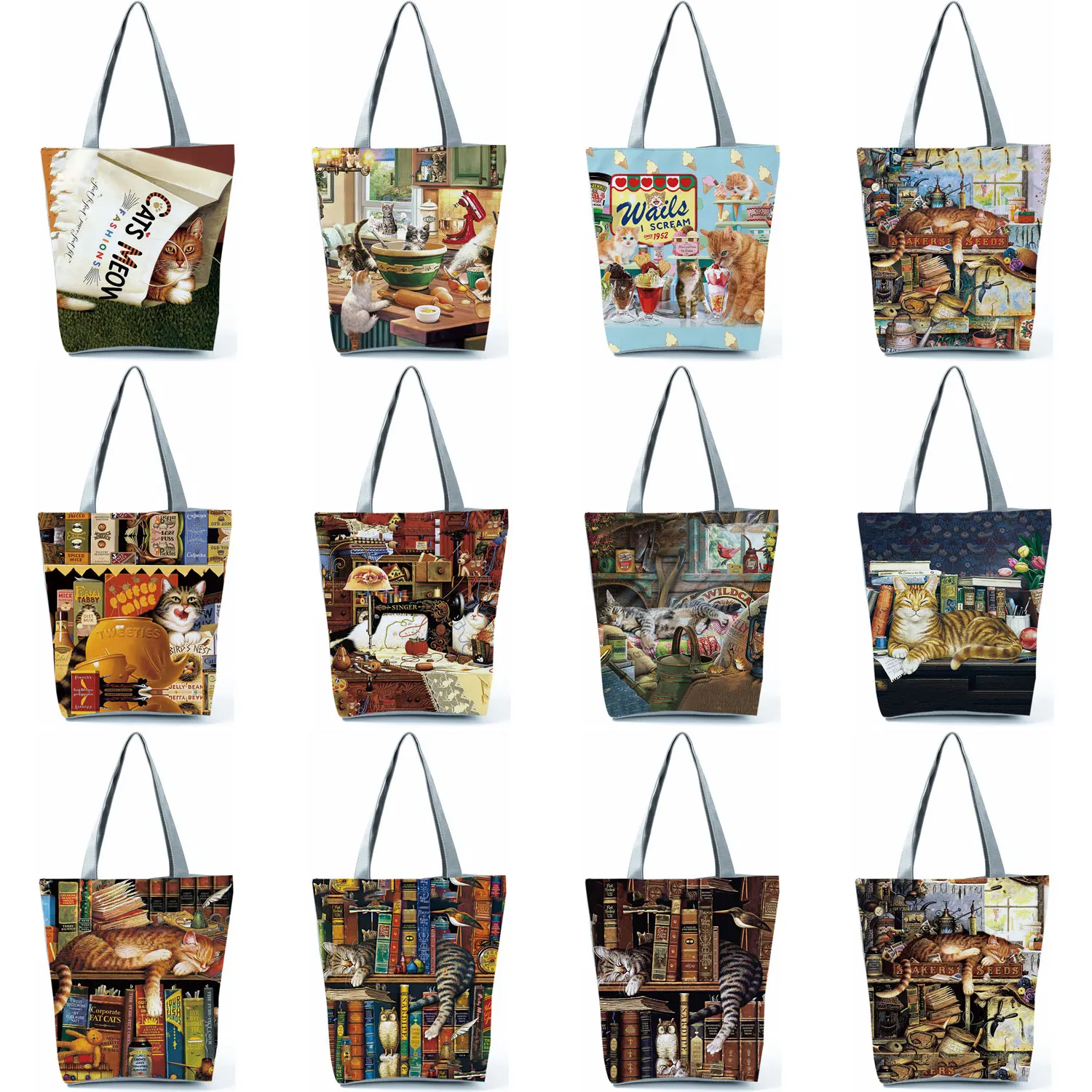Высокое качество, косметичка, горячая Распродажа, пенал, картина маслом, кошка, напечатанная, косметичка, Ретро стиль, модная женская сумка, портативный Органайзер