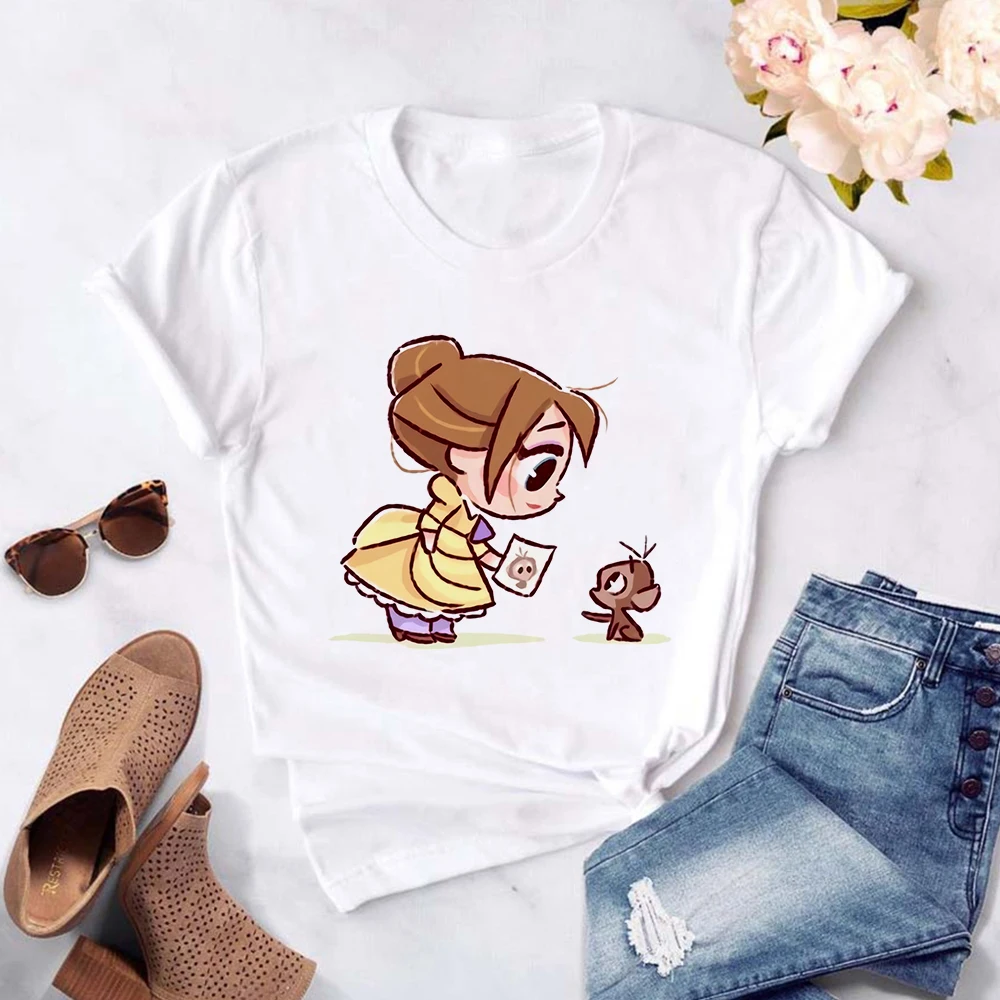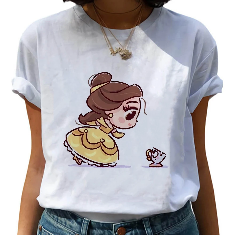 Модная Милая футболка для девочек, футболка принцессы Белль Красавица и чудовище, женская футболка с мультяшным принтом гранж ольччан, Забавные топы, рубашки