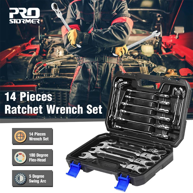 Набор ключей PROSTORMER, универсальный гаечный ключ с трещоткой, набор ключей гаечных дюйма, 14 шт.