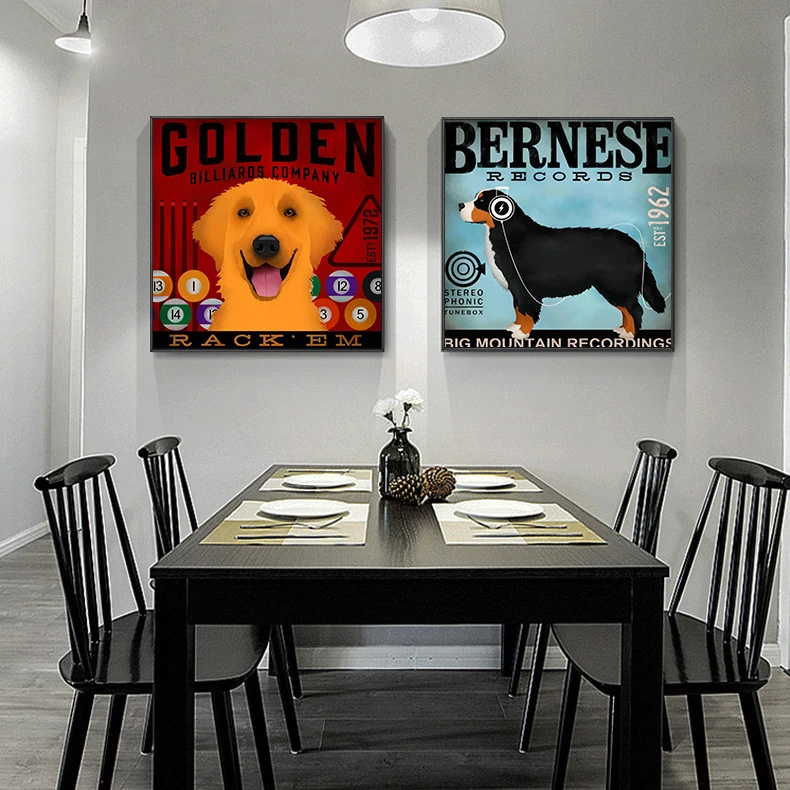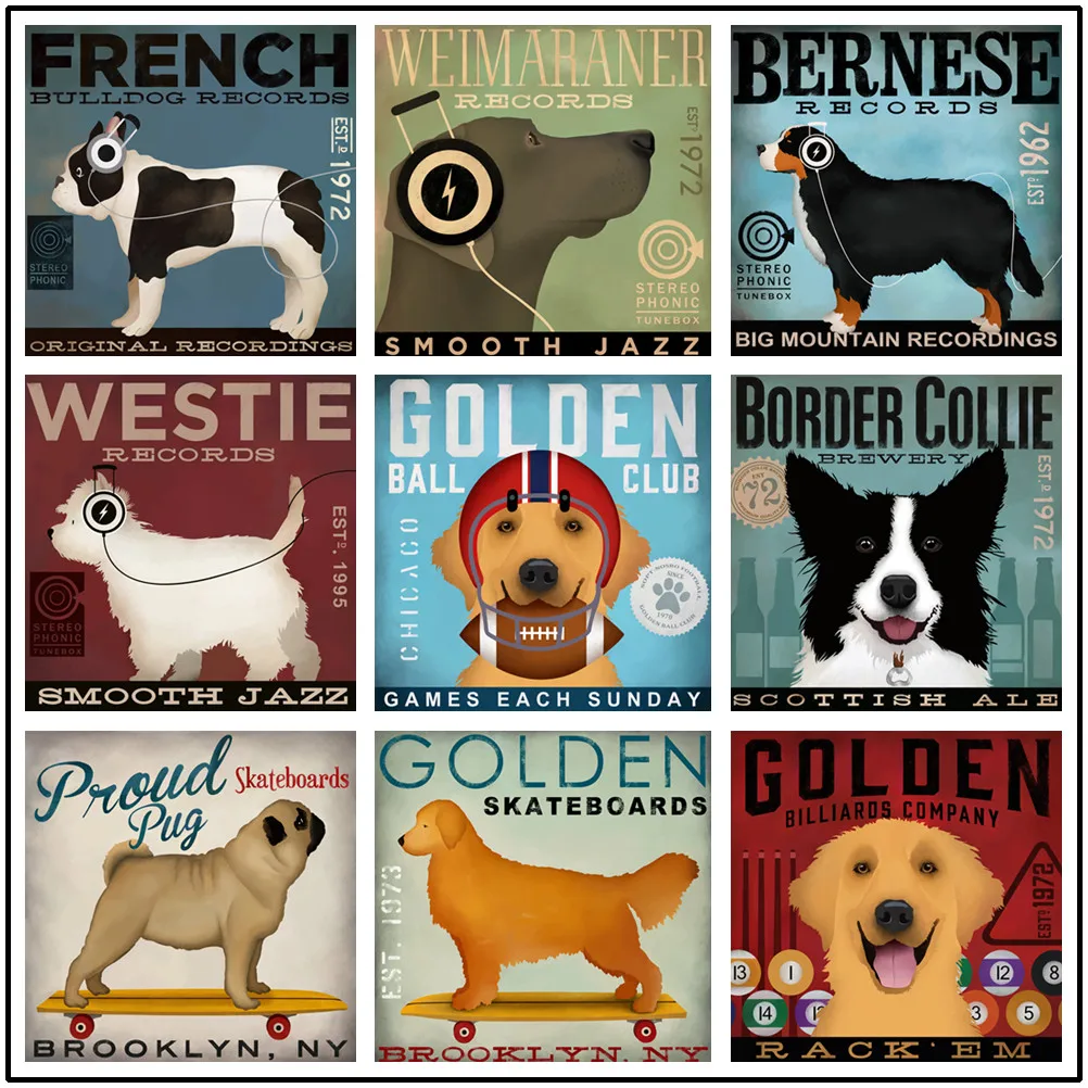 Настенная картина с изображением собаки в стиле ретро, квадратная Картина на холсте с изображением животных для гостиной, детской комнаты, украшение для дома