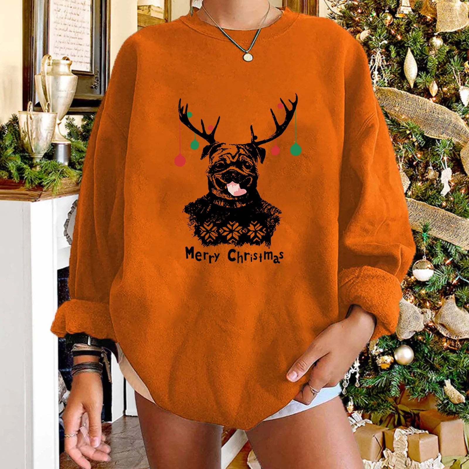 Милые рождественские Модные свитшоты, женская одежда, Повседневный пуловер с длинным рукавом и принтом оленя, топы, женские большие размеры