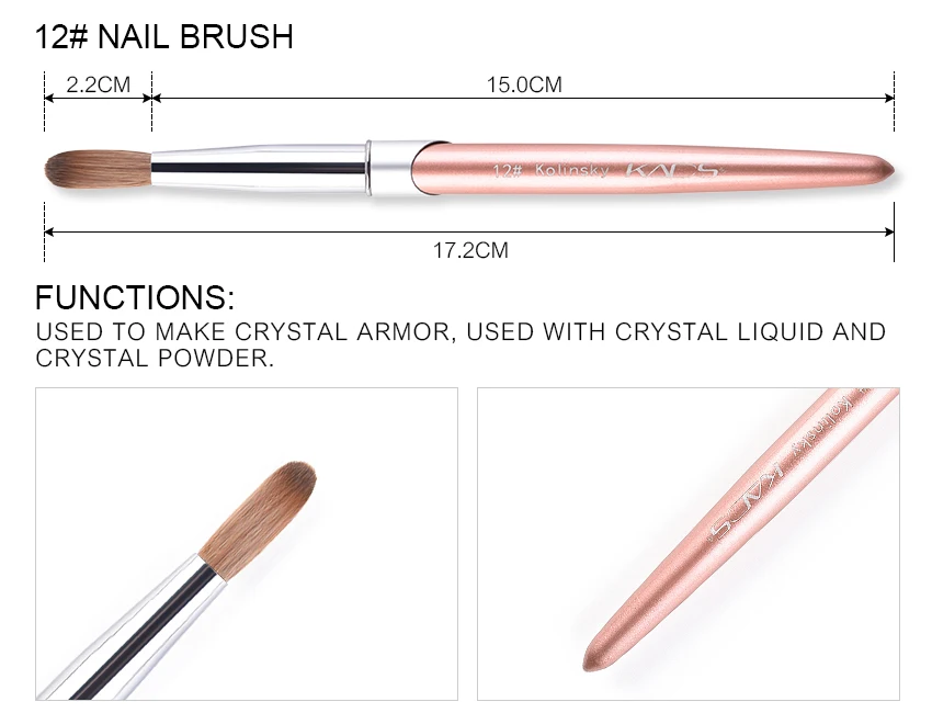 2. Кисти, изготовленные из 100% чистых колинских волос, широко известны как лучшие доступные, предлагая эффектные искусственные ногти-модные результаты.