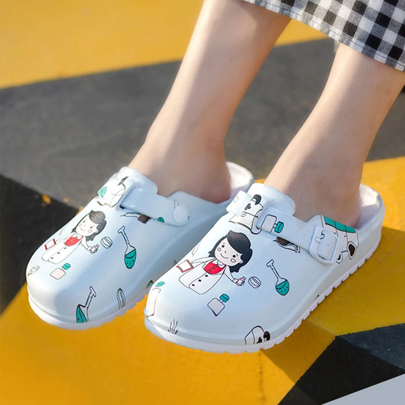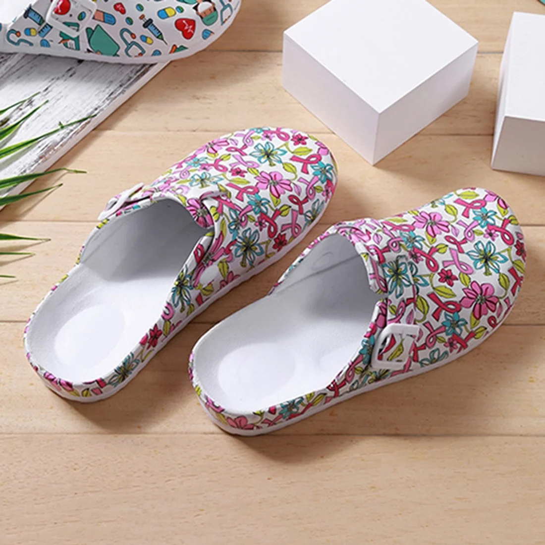 Шлепанцы для медсестер, Нескользящие сандалии на плоской подошве, с принтом, для медицинских работников, удобная обувь для ухода за детьми