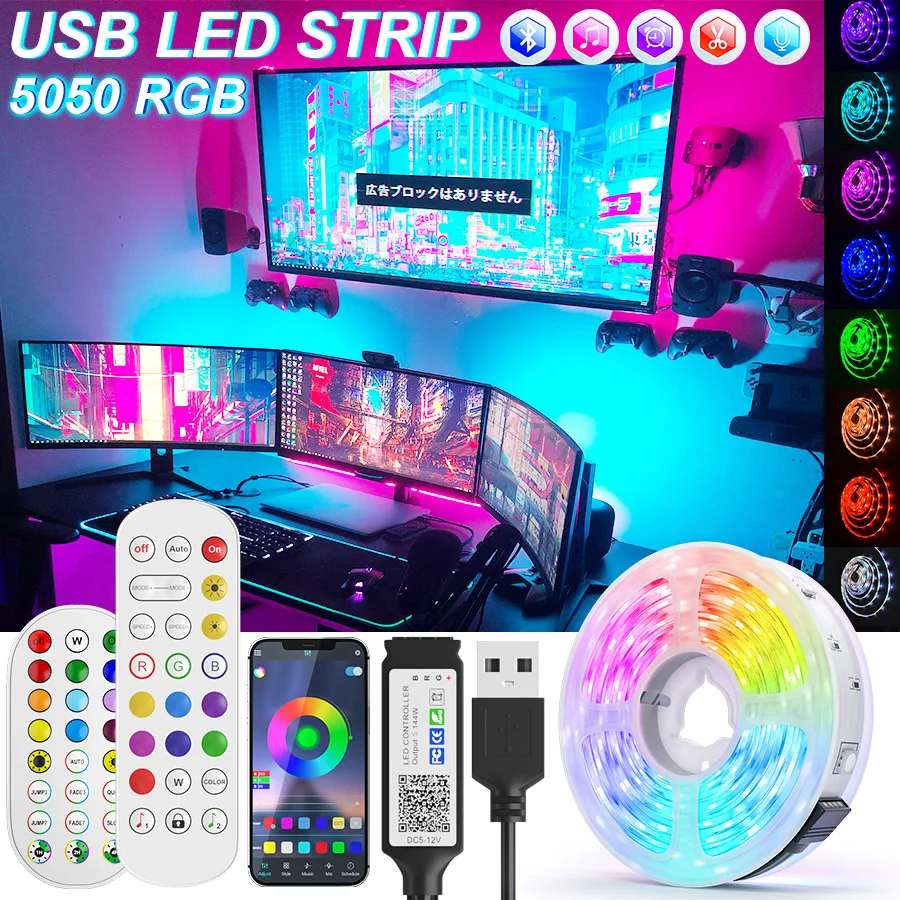 1 м-30 м Светодиодная лента с подсветкой USB Tv RGB Светодиодная лента 5050 RGB Диодная лента для украшения комнаты монитор геймер Bluetooth управление приложением