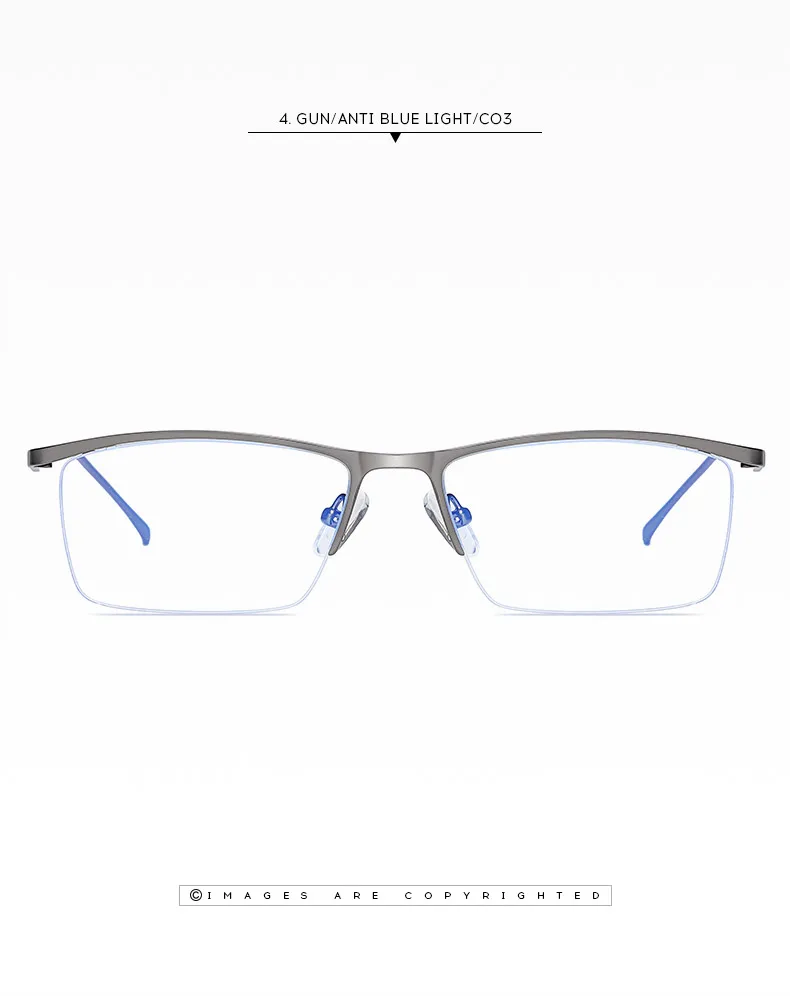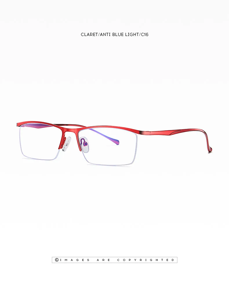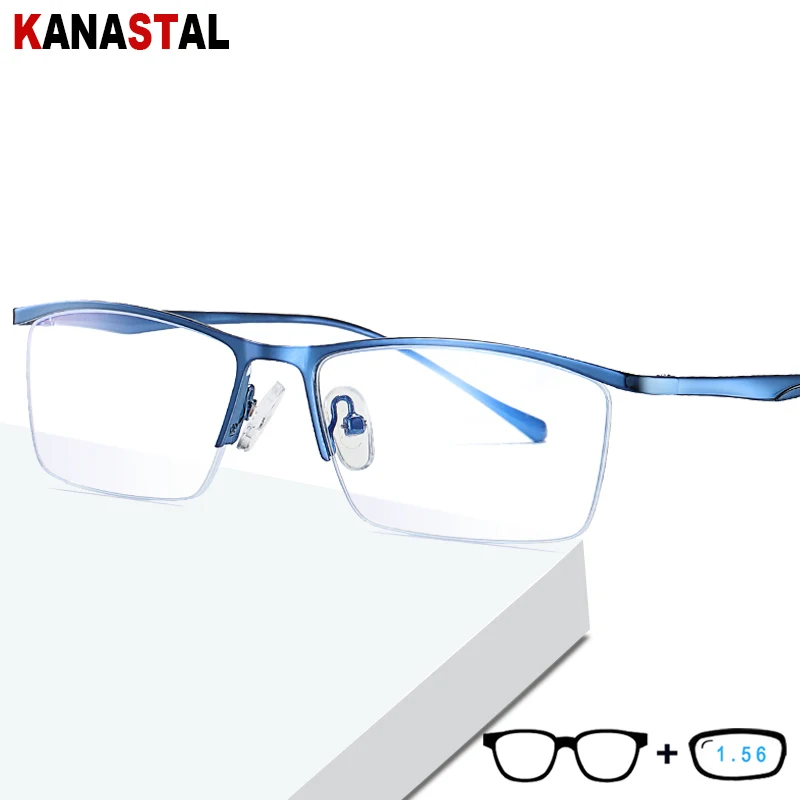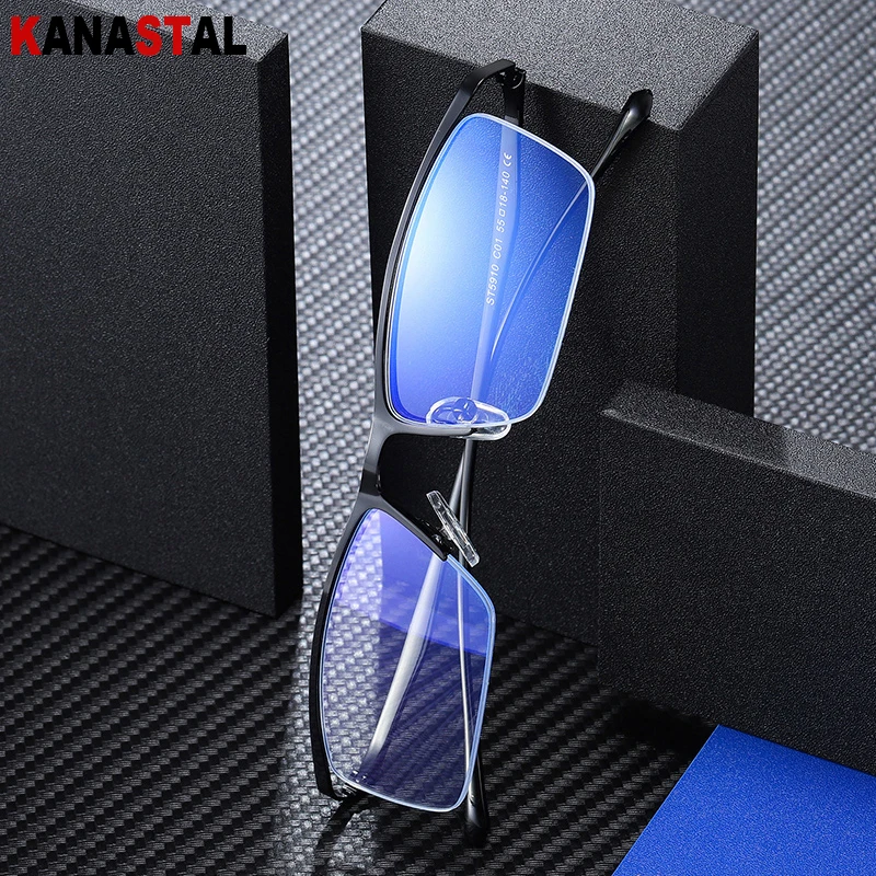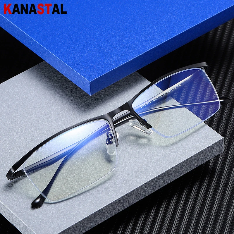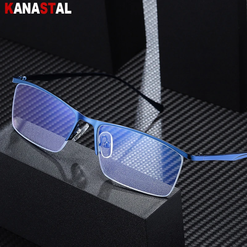 Мужской синий светильник, блокирующие очки для женщин и мужчин, металлическая полуоправа, деловые очки, компьютерные очки по рецепту, очки для чтения при близорукости и дальнозоркости