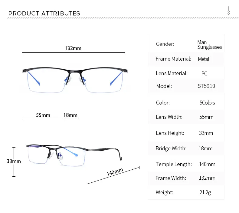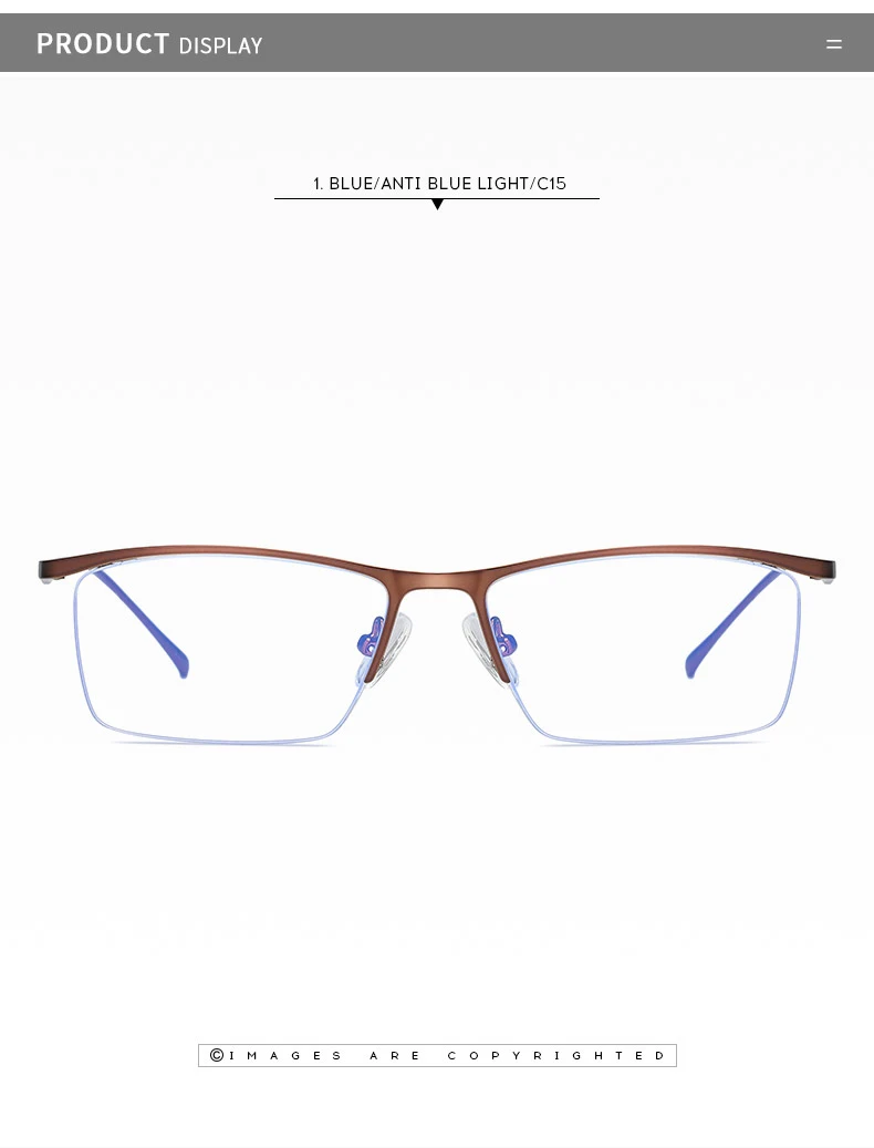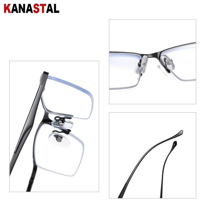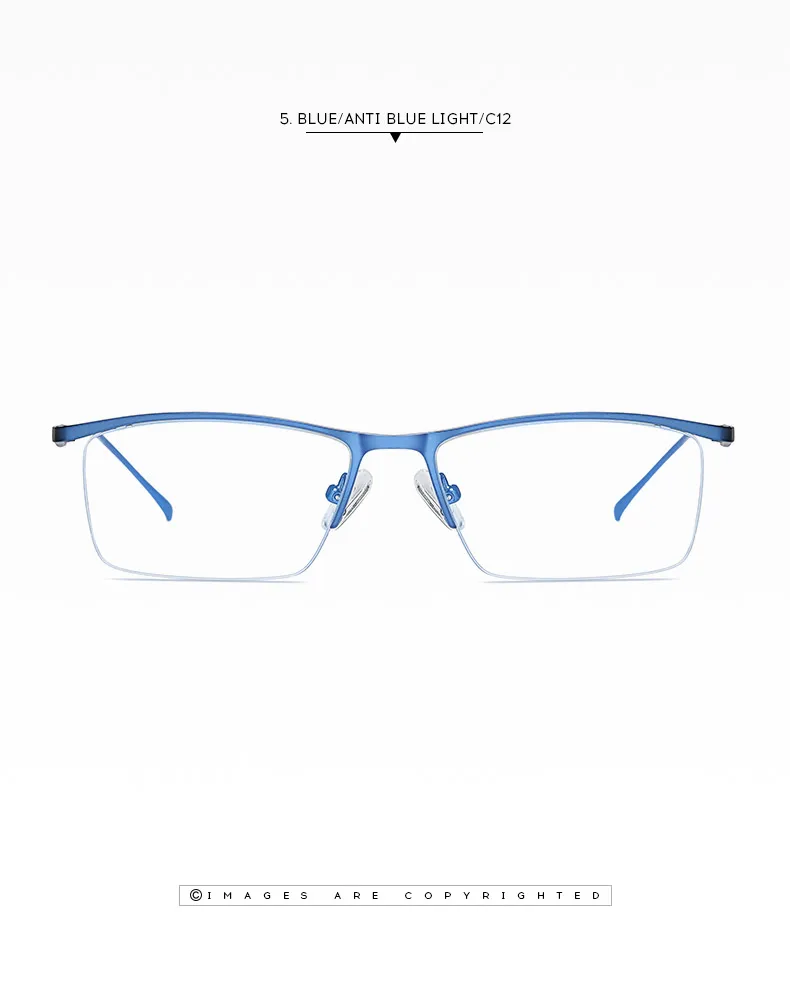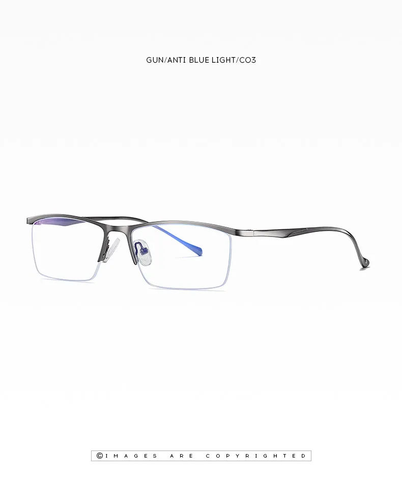Мужской синий светильник, блокирующие очки для женщин и мужчин, металлическая полуоправа, деловые очки, компьютерные очки по рецепту, очки для чтения при близорукости и дальнозоркости