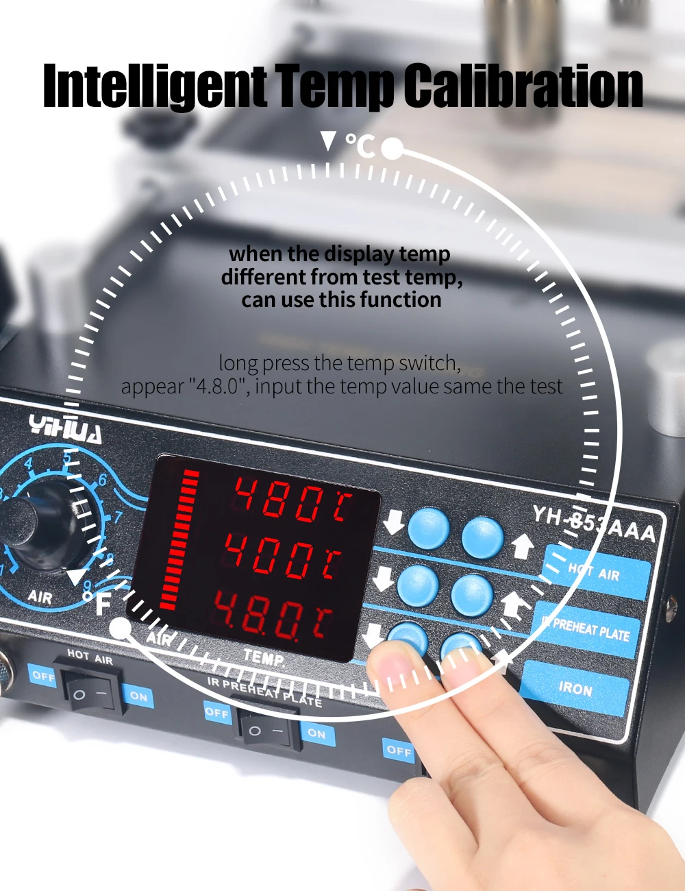 Паяльная станция 3 в 1 YIHUA 853AAA, 1200 Вт, с подогревом