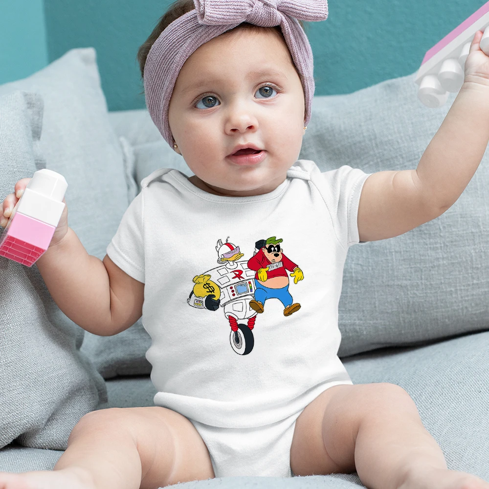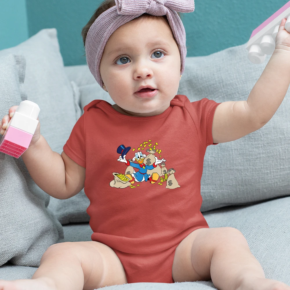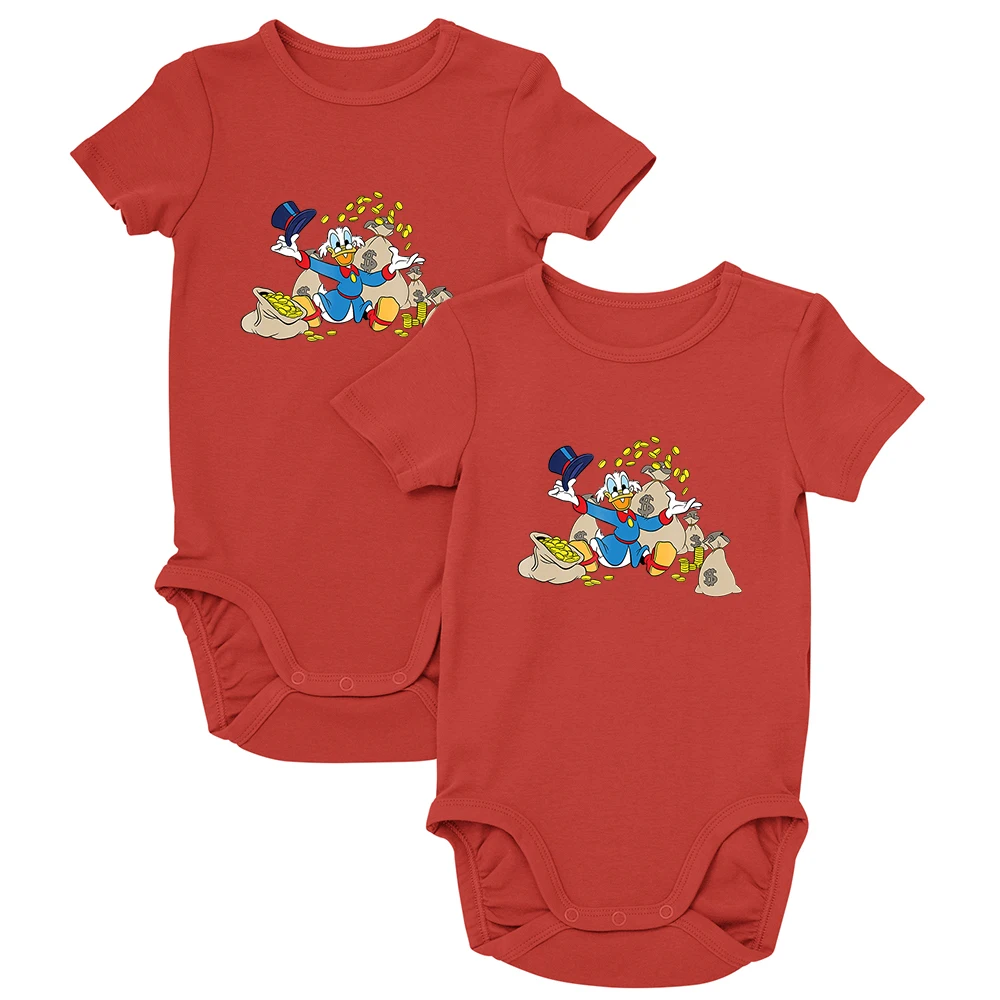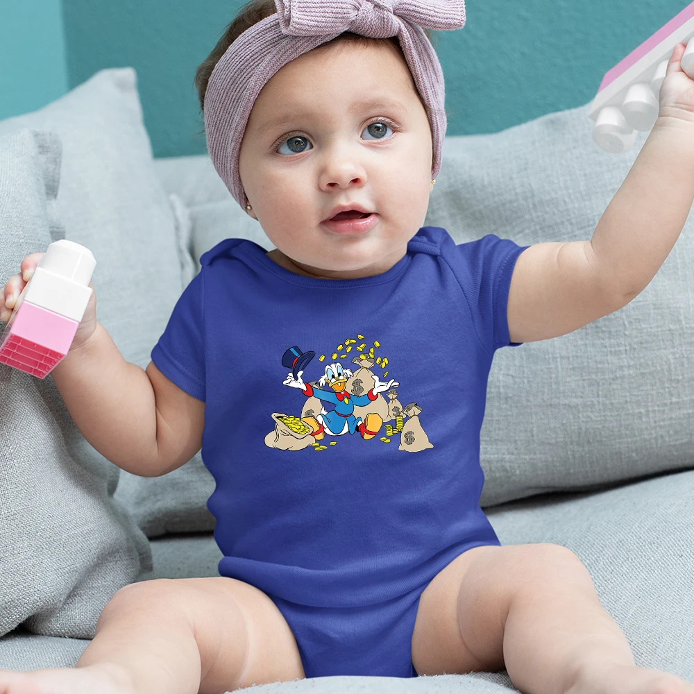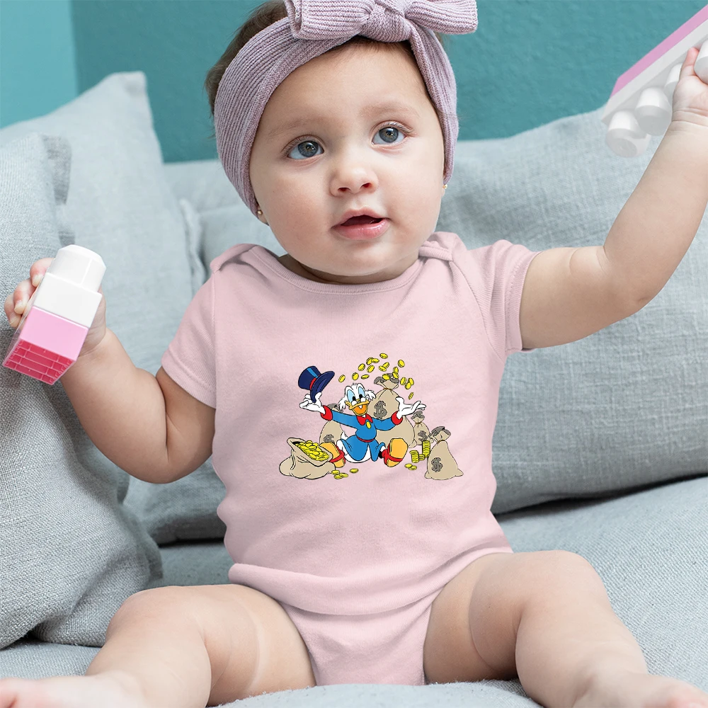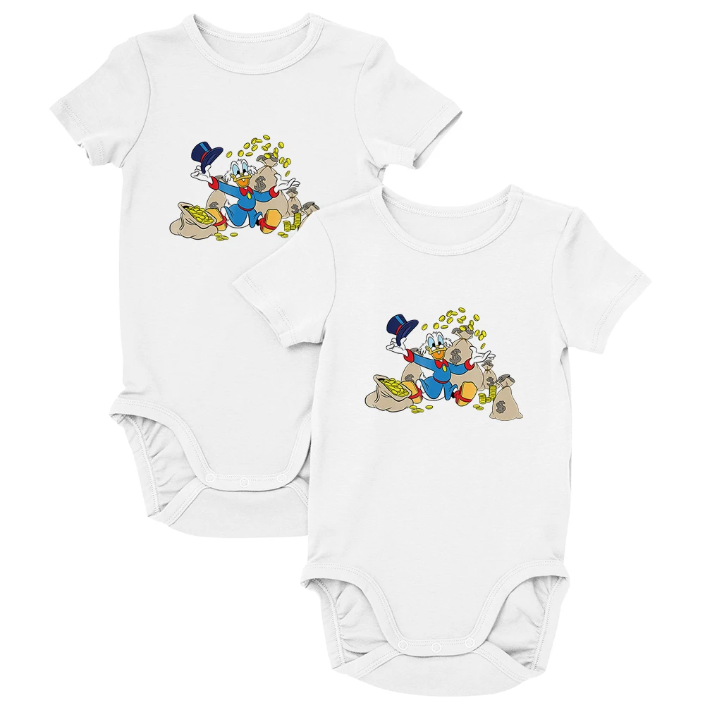 Новый летний детский комбинезон от 0 до 24 м, Скрудж Макдак, Дисней, мультяшный принт, шею, короткий рукав, комбинезон для новорожденных, удобный Harajuku